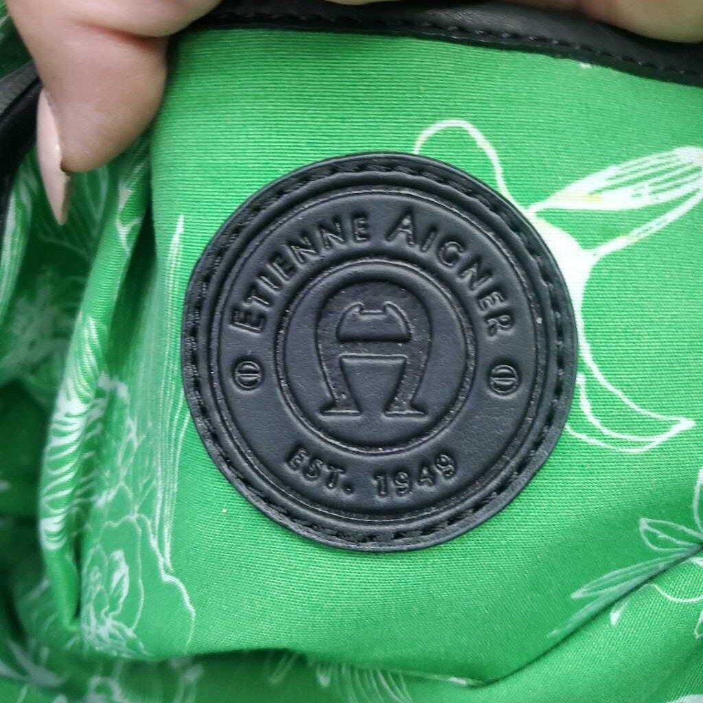 Etienne Aigner Woven Straw Tote - Black Trim & Buckle Detail with Green Floral Lining ✅ Triple inspected for quality, condition & authenticity! 💯 Authenticity guaranteed or money back. ❓ Questions? Contact us. 📍 Ships from Enterprise, AL.