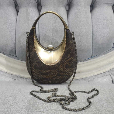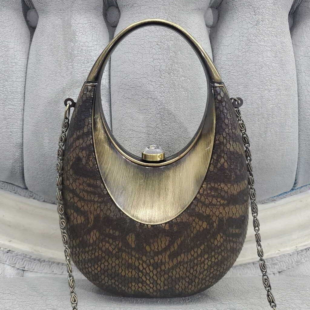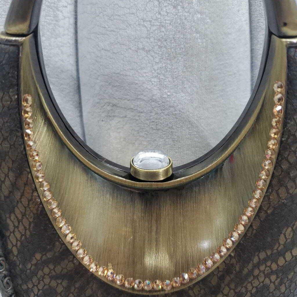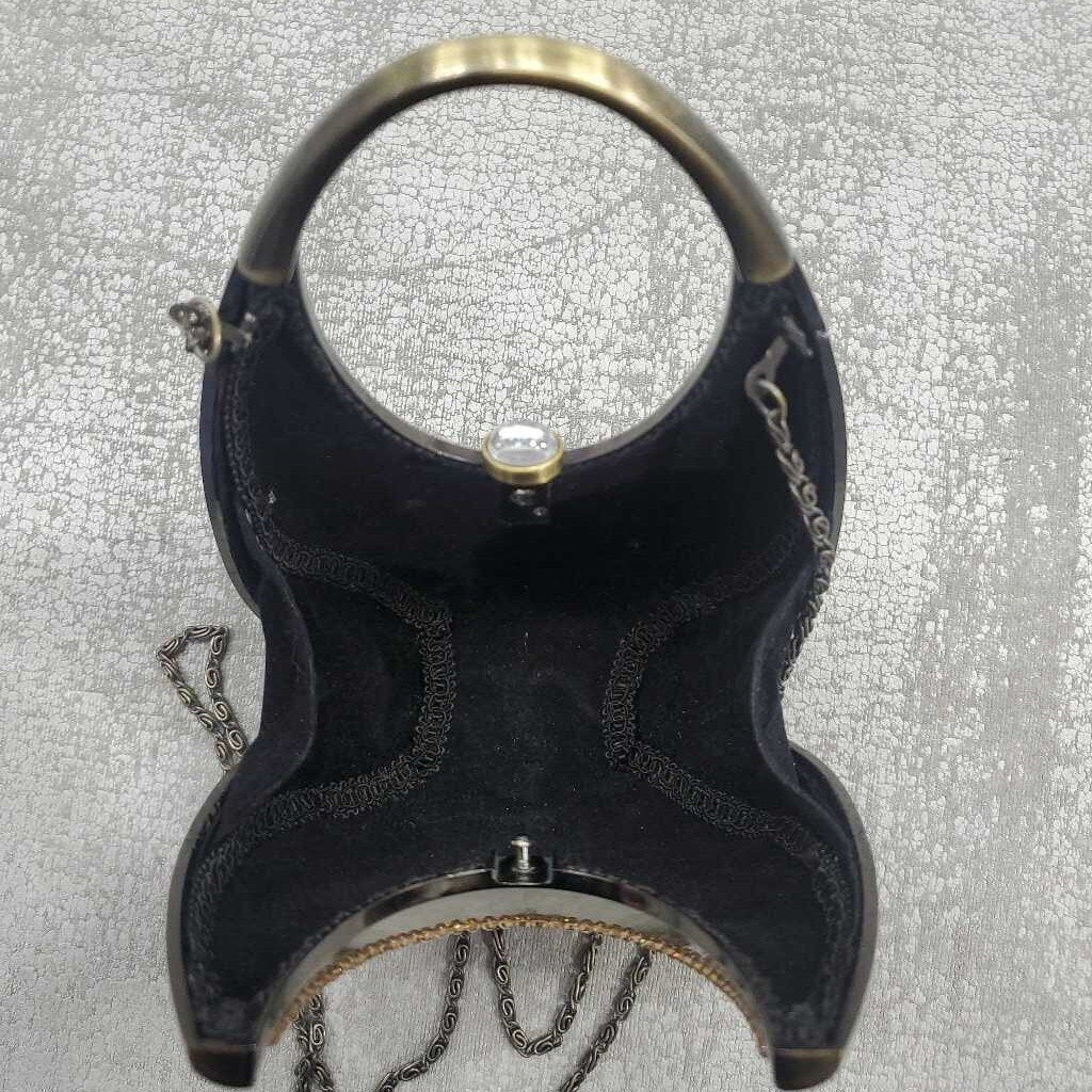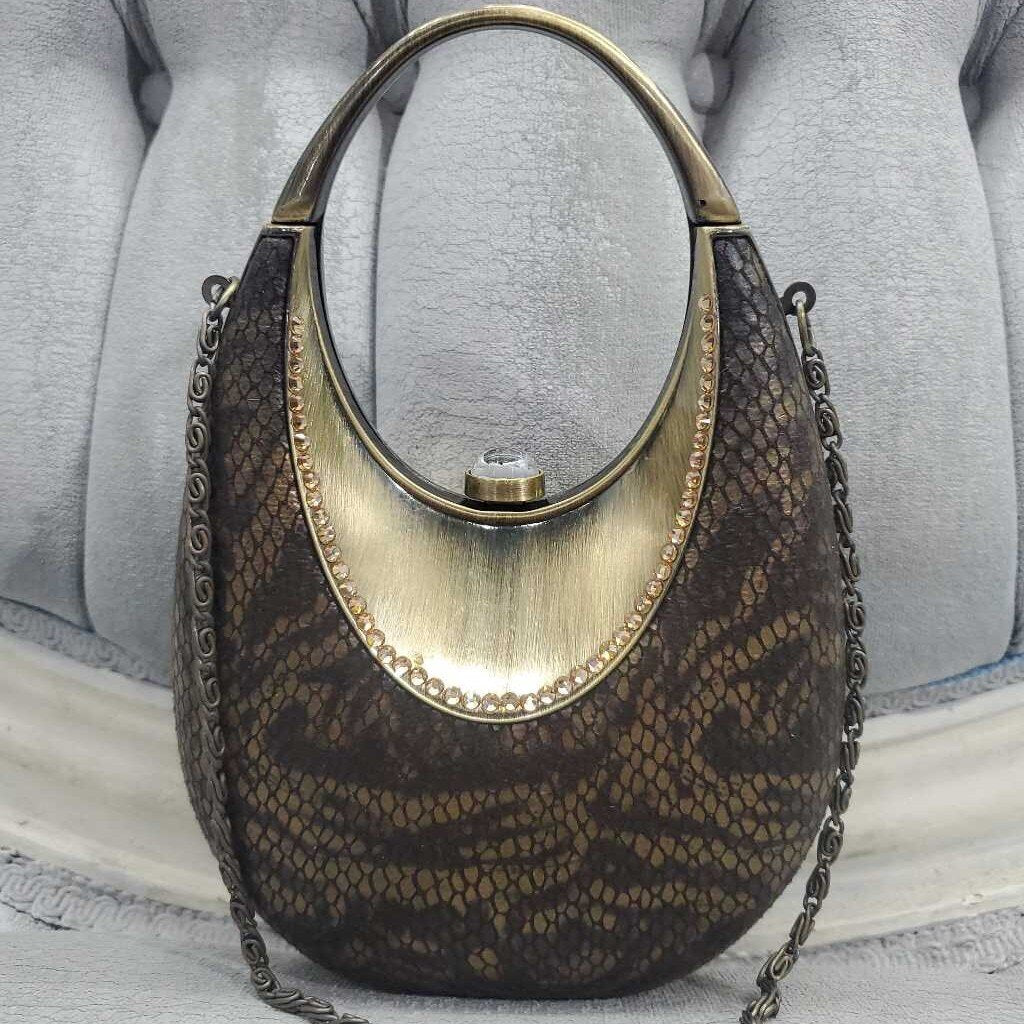 Vintage Style Metallic Structured Mini Evening Bag With Chain Strap, Crystal Accent, Footed ✅ Triple inspected for quality, condition & authenticity! 💯 Authenticity guaranteed or money back. ❓ Questions? Contact us. 📍 Ships from Enterprise, AL.
