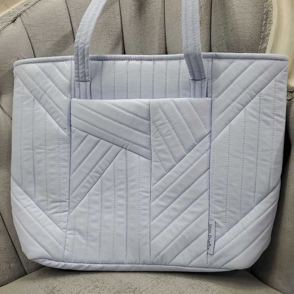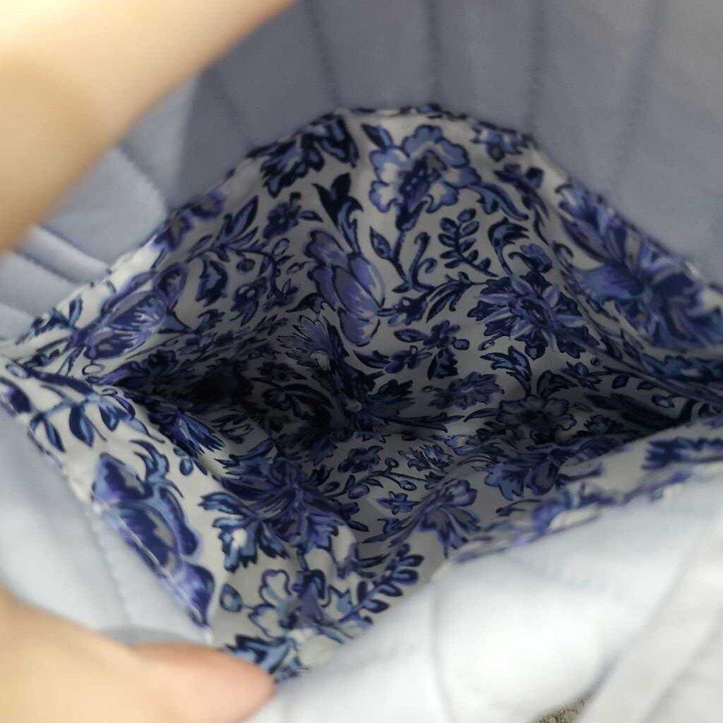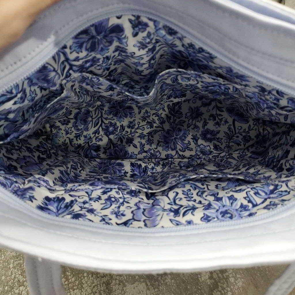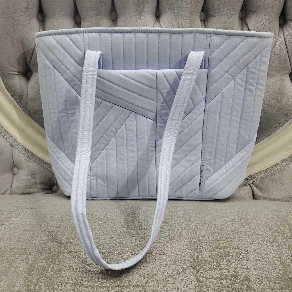 Quilted Solid Tote, Solid on the Outside, White with Blue Flowers on the inside lining, excellent like new condition â
