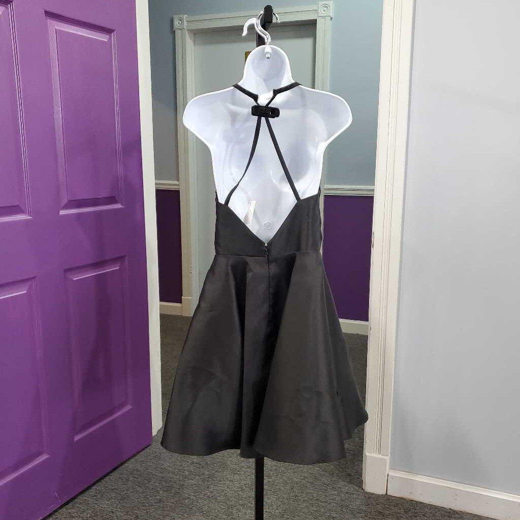 Spaghetti Strap Satin Fit Flare Semi-Formal, 26-1/2", Needs new hook that connects back straps together â
