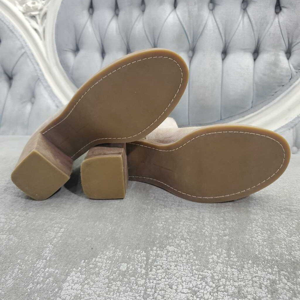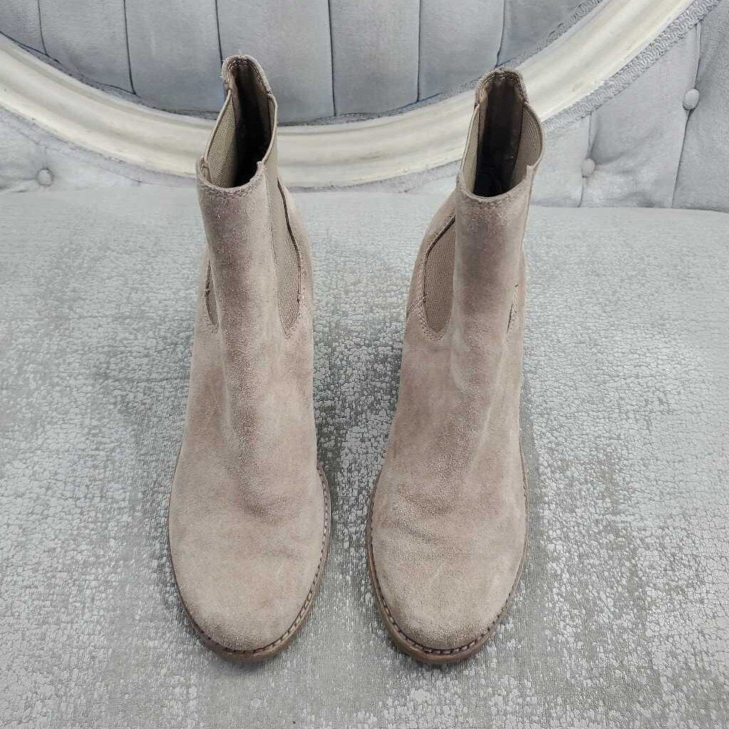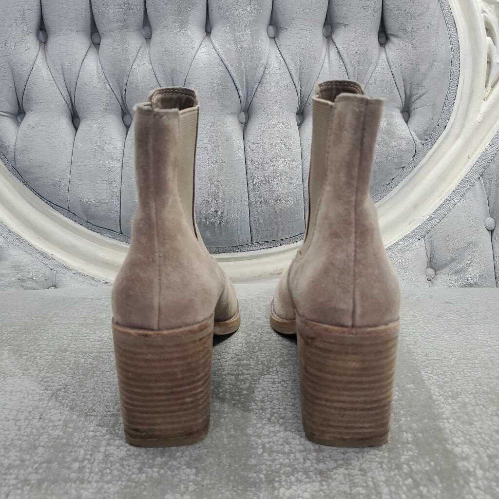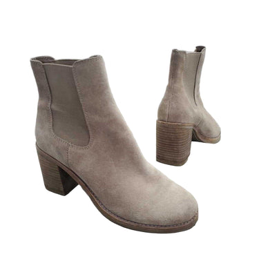 Stylish brown suede ankle booties from Dolce Vita, perfect for any outfit. Features a comfortable block heel and elastic side panels. β