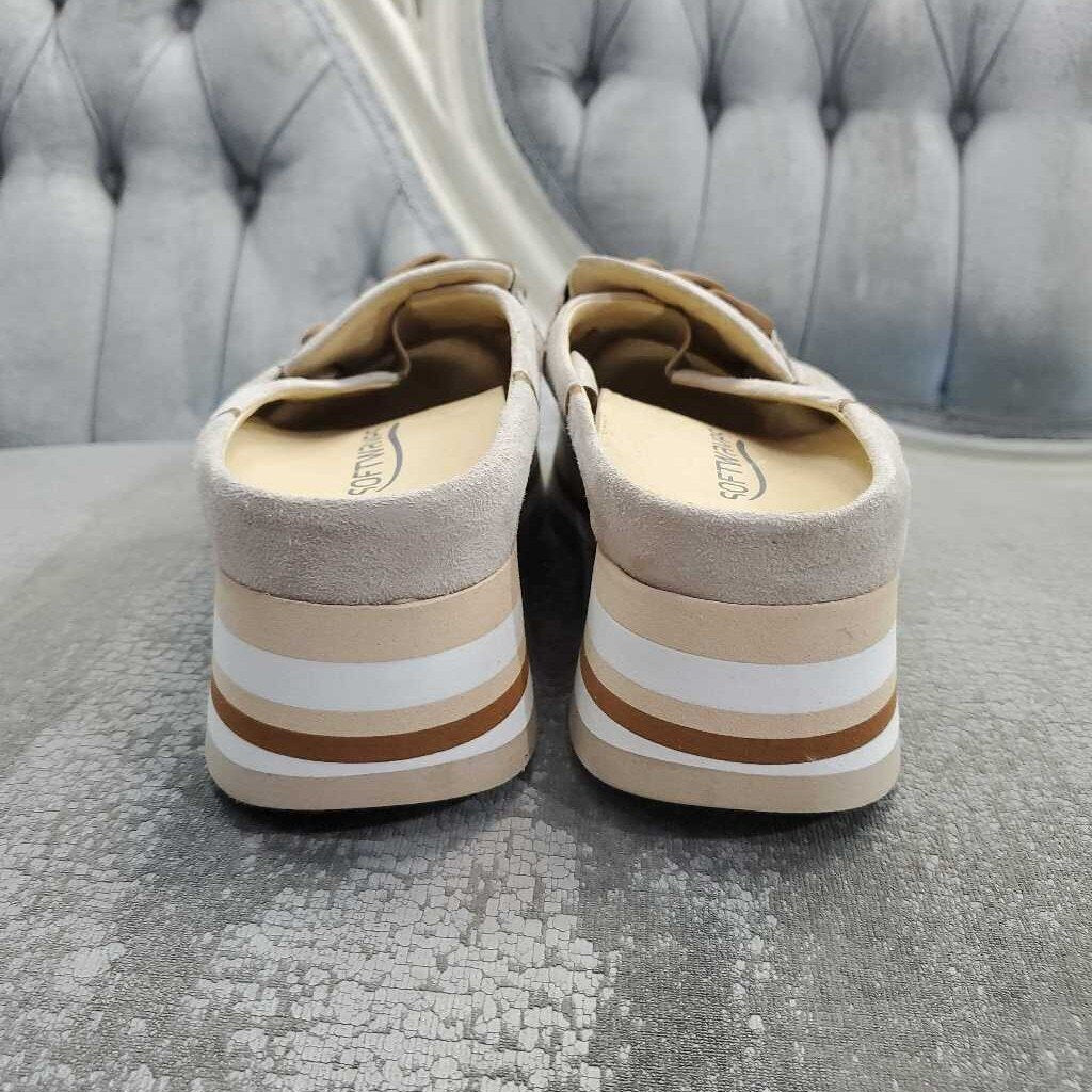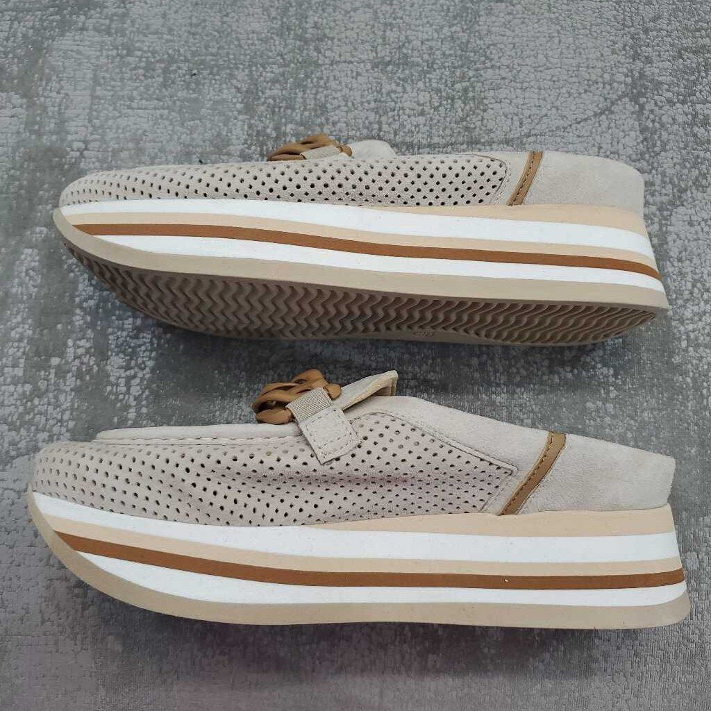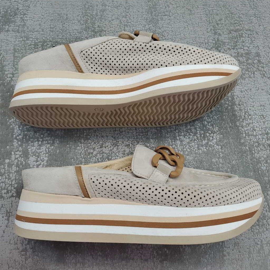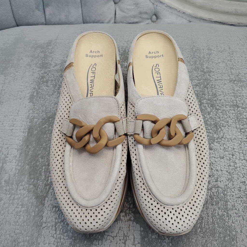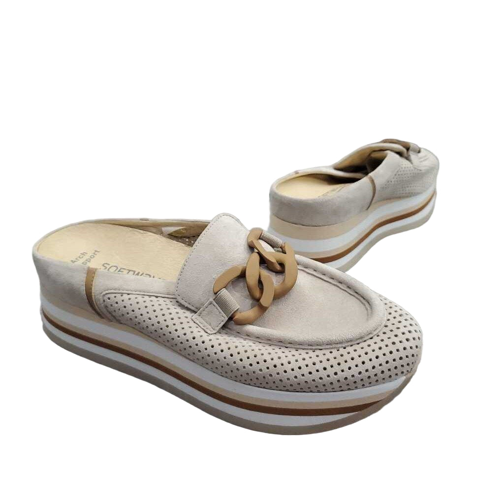 Comfortable light beige slip-on shoes from Softwaves featuring arch support and stylish perforated design. Ideal for casual wear and all-day comfort. β