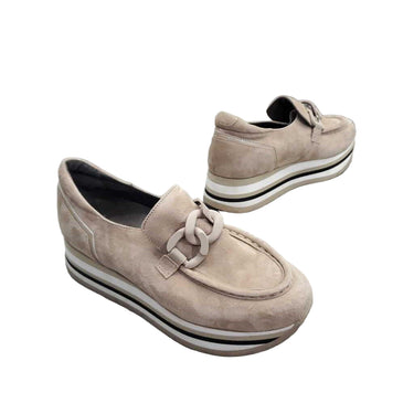 Comfortable light beige slip-on shoes from Softwaves featuring arch support and stylish perforated design. Ideal for casual wear and all-day comfort. β