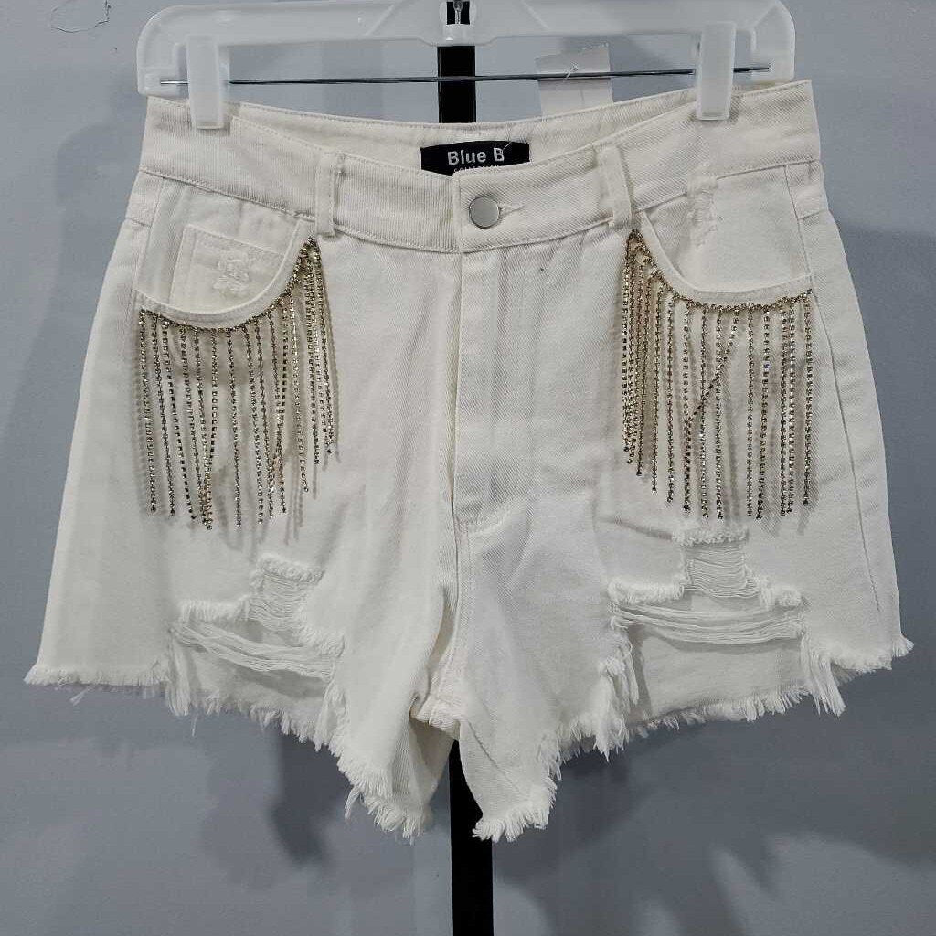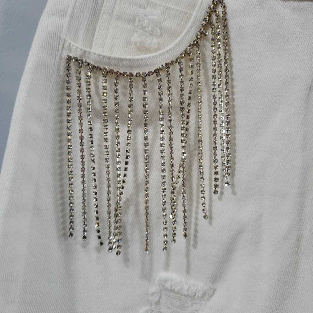 Rhinestone Fringe Frayed Hem Cut Off Denim Shorts β