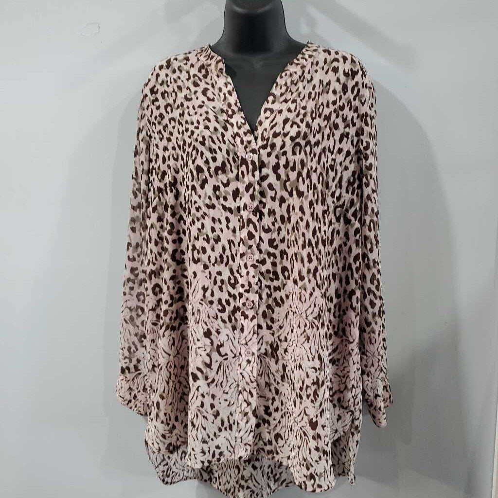 Long Sleeve Leopard Floral Button Up Tunic Top â