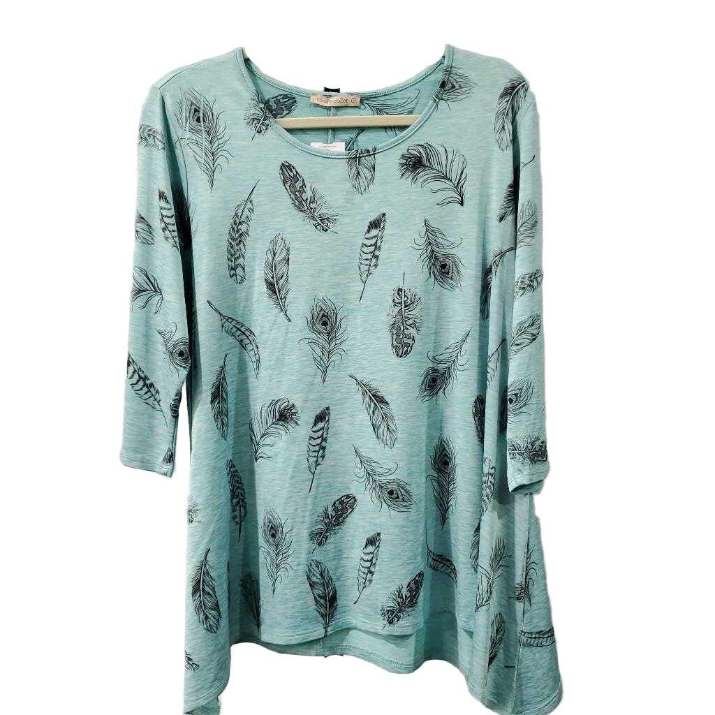 3/4 Sleeve Feather Print Knit Top ✅ Triple inspected for quality, condition & authenticity! 💯 Authenticity guaranteed or money back. ❓ Questions? Contact us. 📍 Ships from Enterprise, AL.
