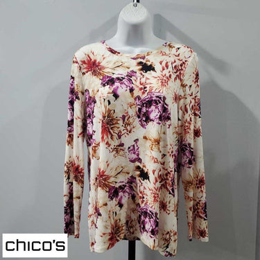 Long Sleeve Floral Knit Top, Chico's Size 1 β
