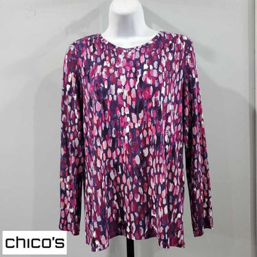 Long Sleeve Printed Knit Top, Chico's Size 1 β