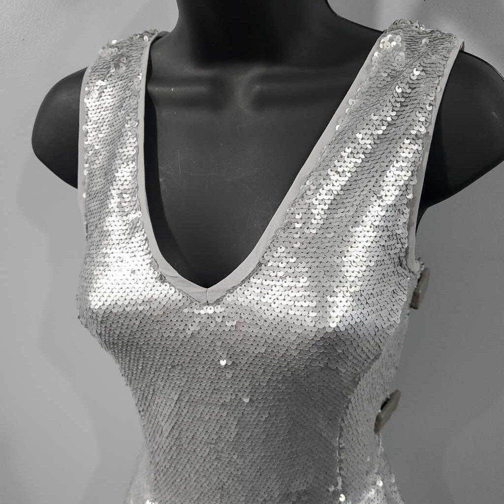 Sleeveless Sequin V-Neck Semi Formal With Back Zipper ✅ Triple inspected for quality, condition & authenticity! 💯 Authenticity guaranteed or money back. ❓ Questions? Contact us. 📍 Ships from Enterprise, AL.