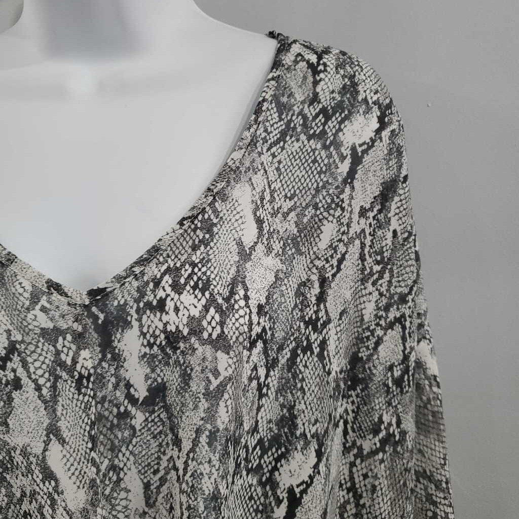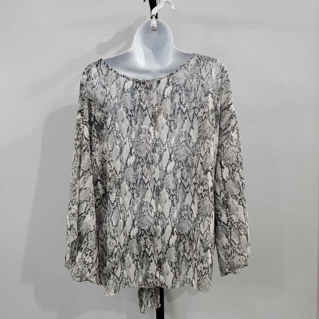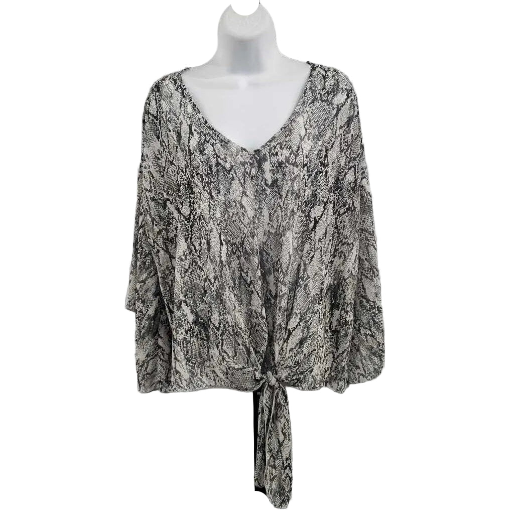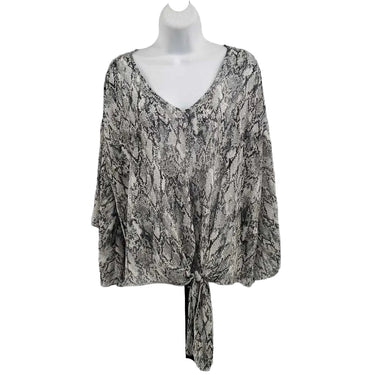 3/4 Sleeve Snake Print Tie Front Top ✅ Triple inspected for quality, condition, & authenticity! 💯 Authenticity guaranteed or money back. ❓ Questions? Contact us. 📍 Ships from Enterprise, AL.