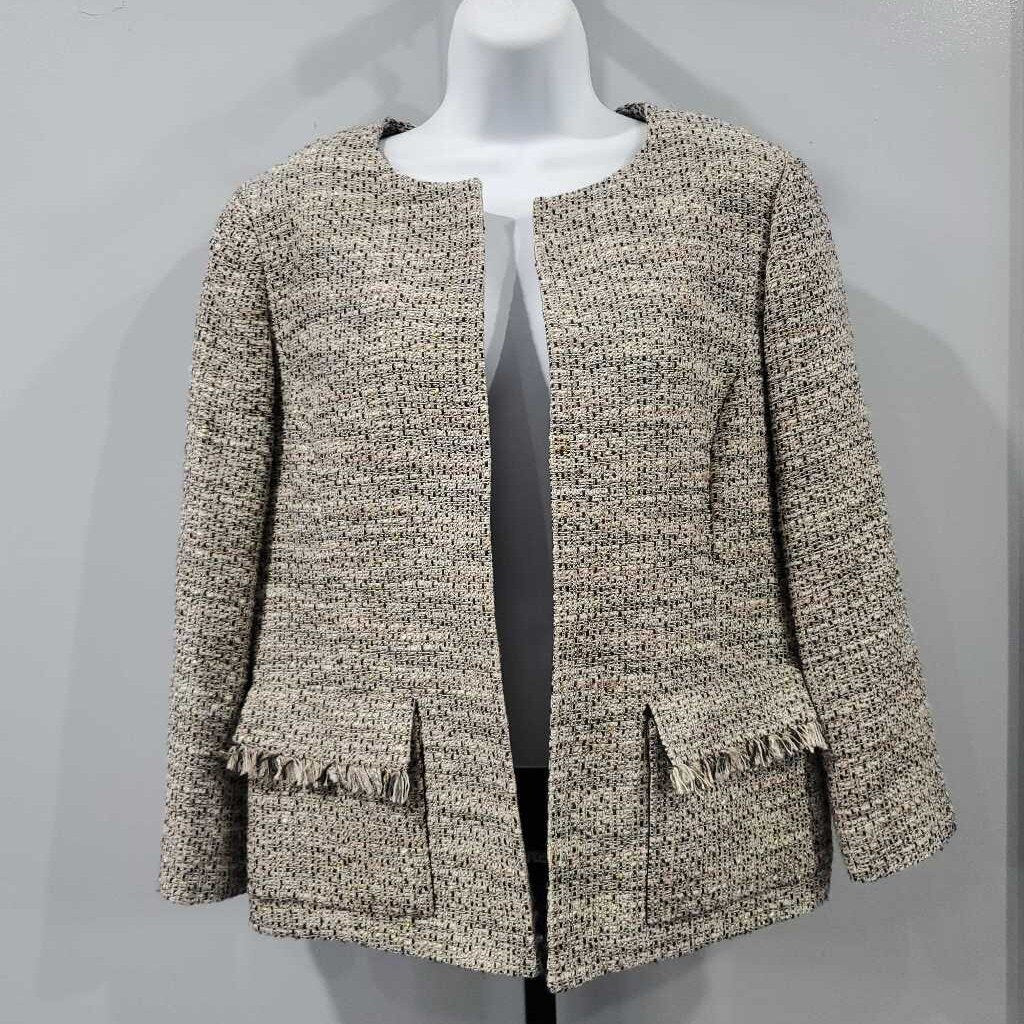 Long Sleeve Pockets Metallic Tweed Jacket Lined โ