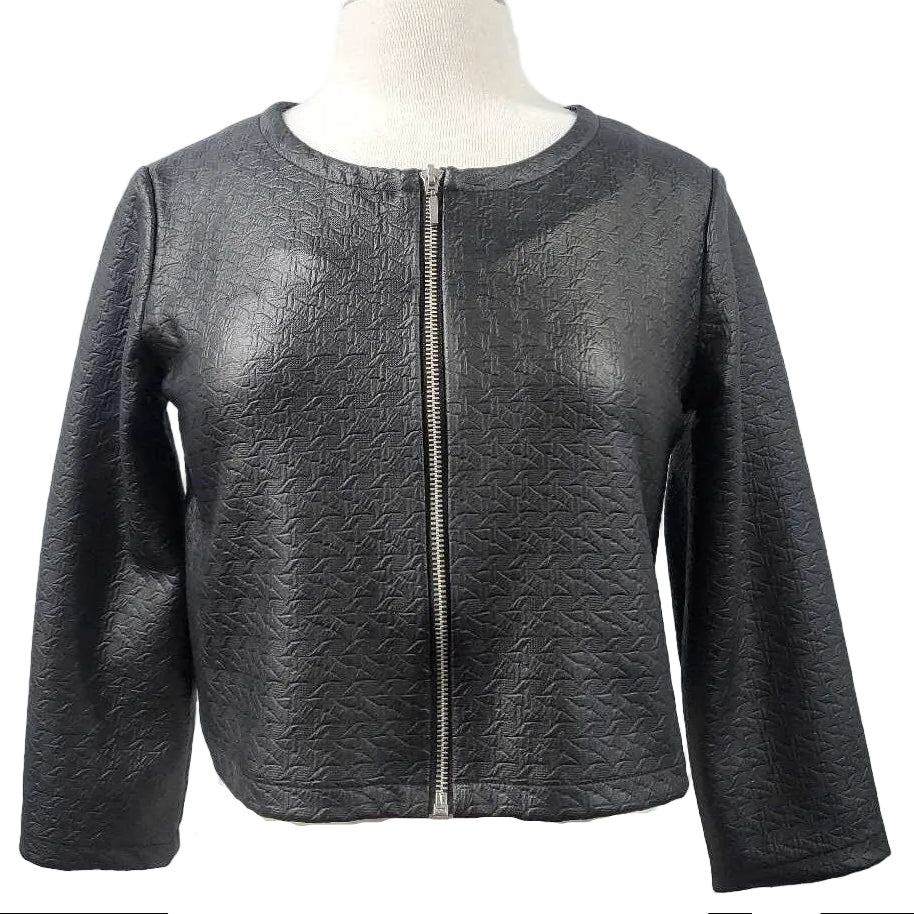 Long Sleeve Faux Leather Crop Zip Up Jacket β