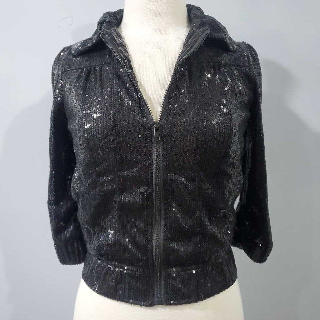 3/4 Sleeve Hooded Sequin Zip Up Jacket β