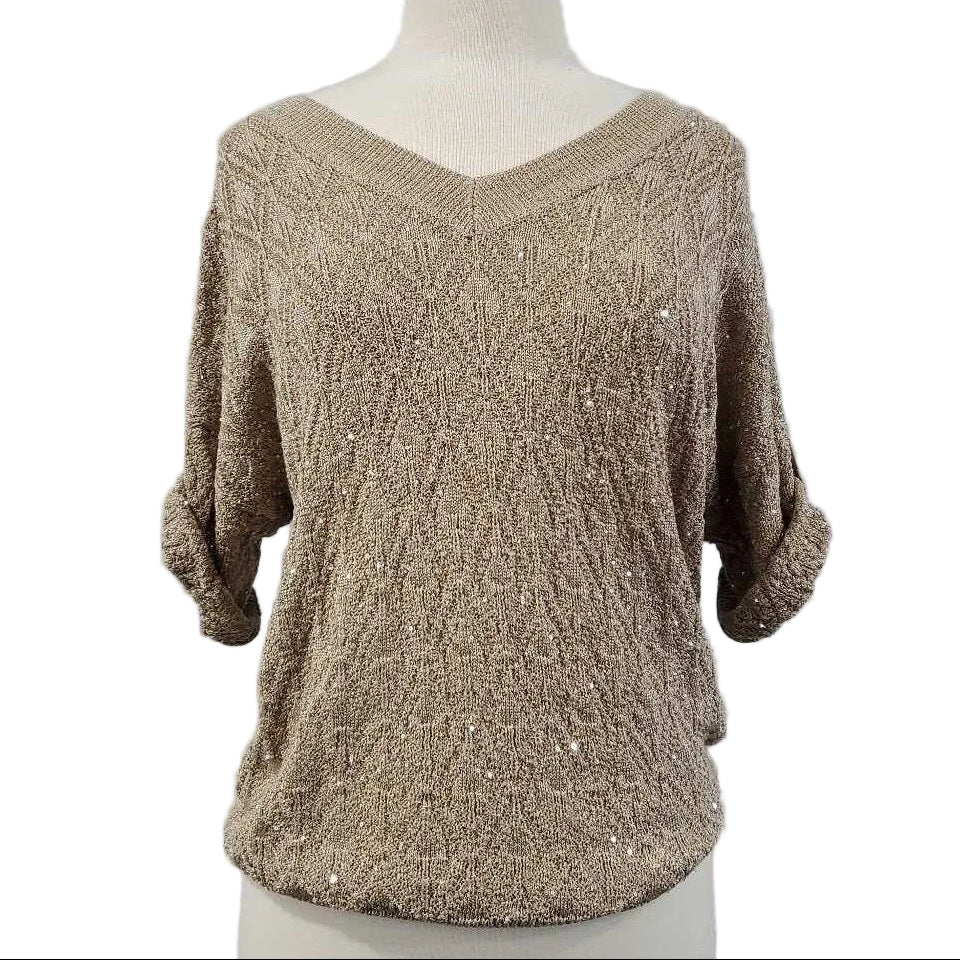 Short Sleeve Mini Sequin Sweater, Chico's Size 0 β