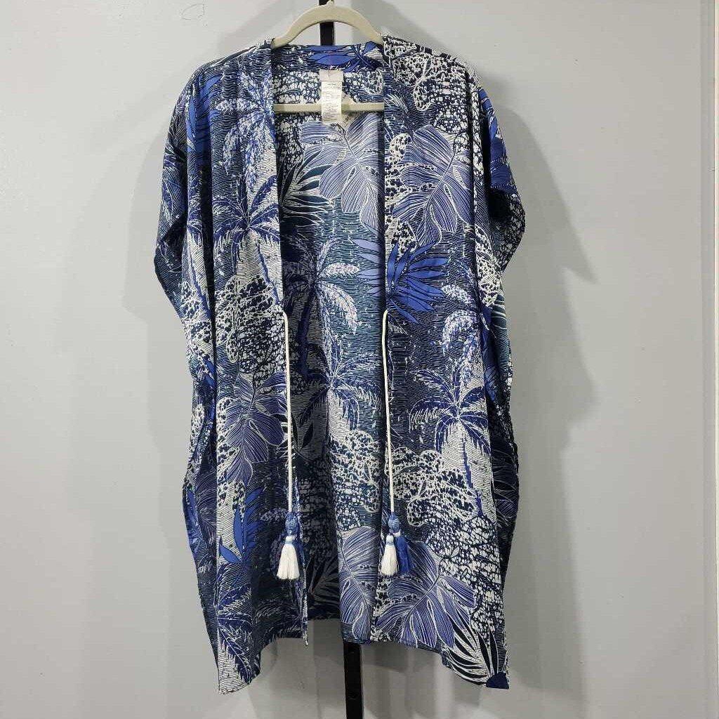 Cap Sleeve Tassel Tie Tropical Leaf Kimino â