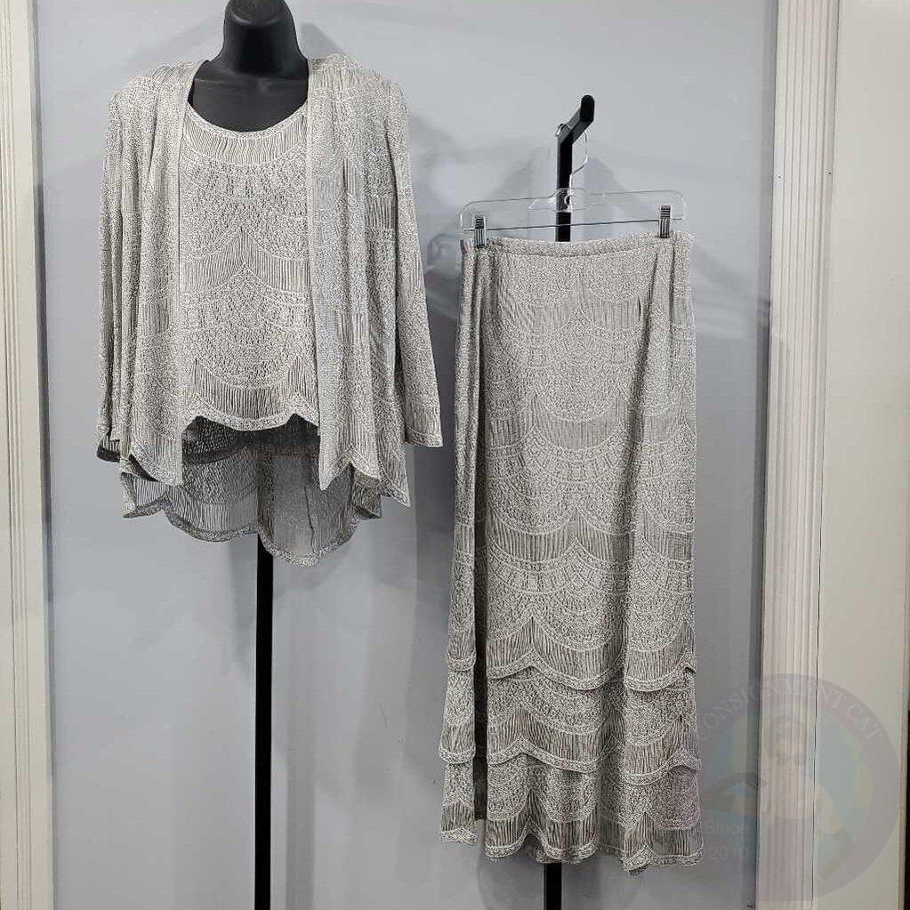 3 Pc Scalloped Silver Jacket Top & Skirt Set ✅ Triple inspected for quality, condition & authenticity! đŸ’¯ Authenticity guaranteed or money back. ❓ Questions? Contact us. 📍 Ships from Enterprise, AL.