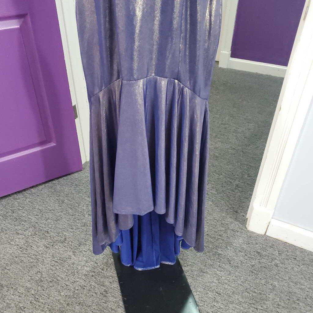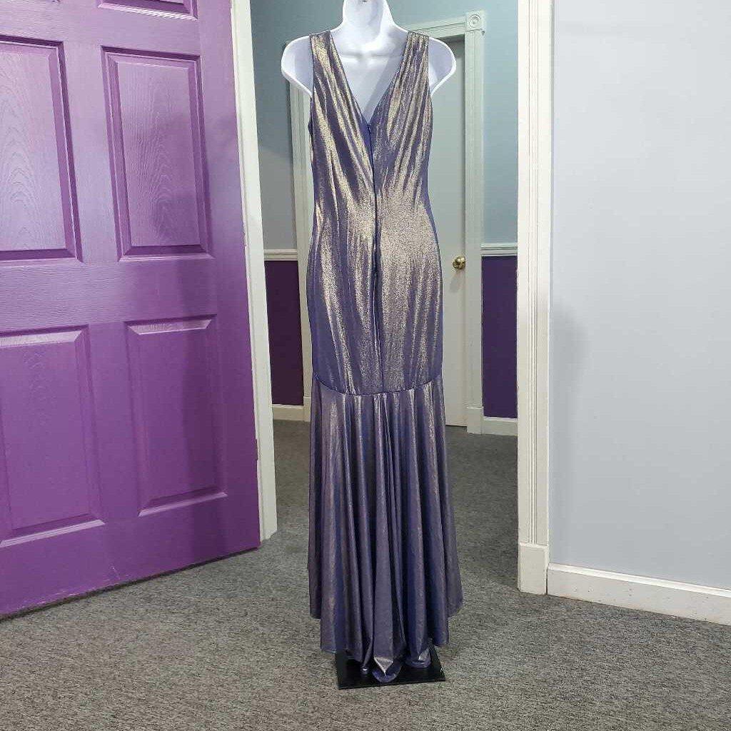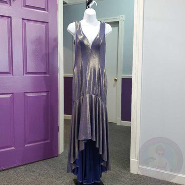 Sleeveless V-Neck Mermaid Shimmer Metallic Formal , Hi-Lo With Back Zipper â