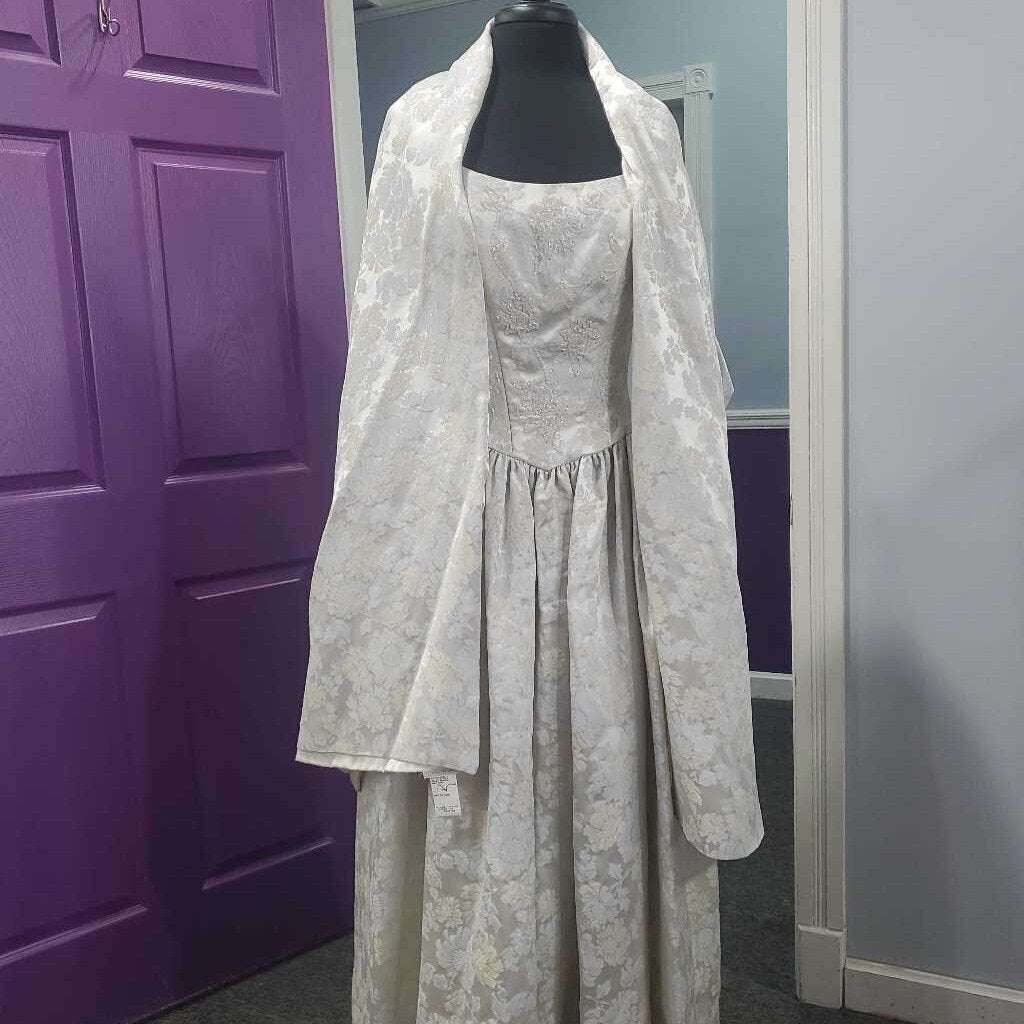 Vintage 2pc Shawl and Sleeveless Brocade Dress