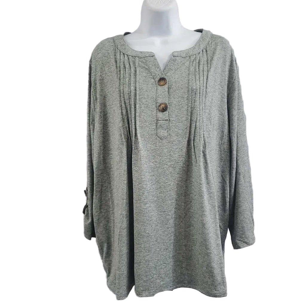 3/4 roll Tab Knit Button Detail Top β