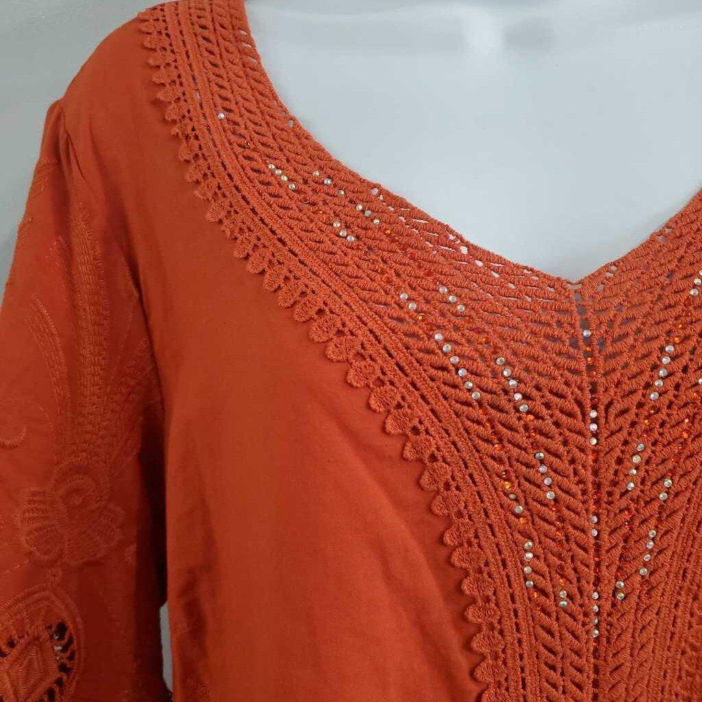 3/4 Sleeve Embroidered Beaded Lace Top β