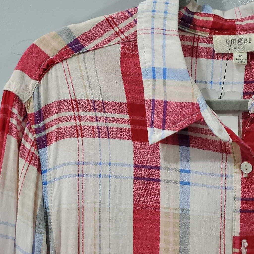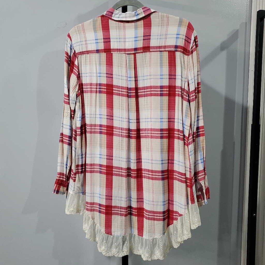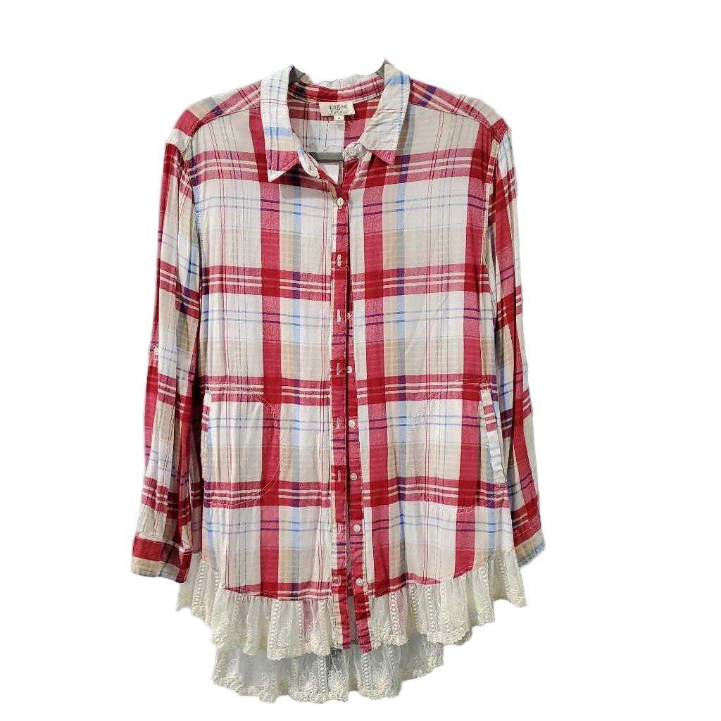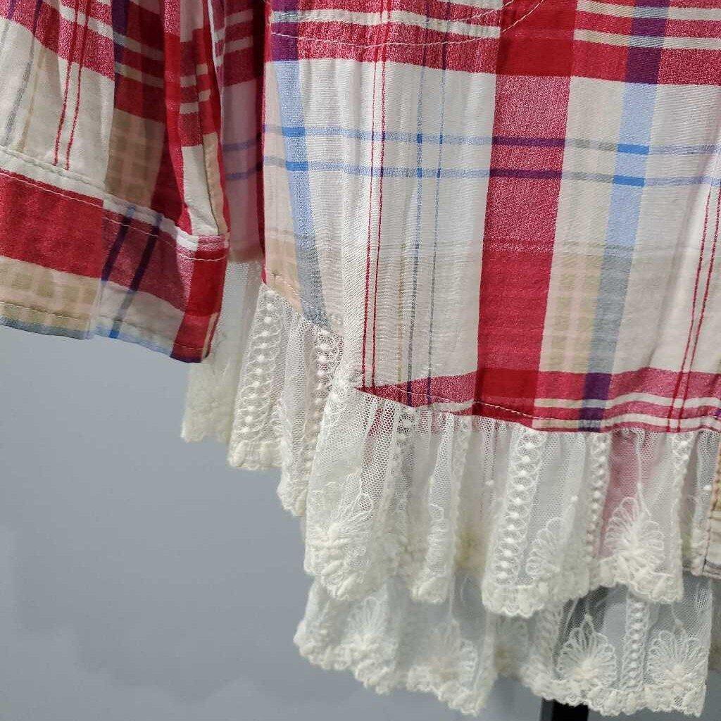 Long Sleeve Plaid Lace Hem Button Up Top β