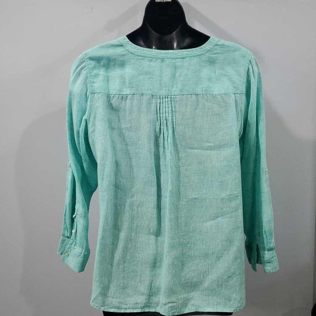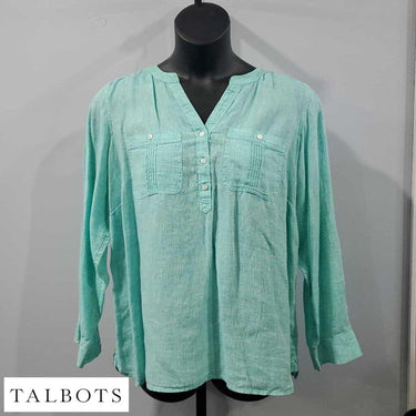 Talbots Long Sleeve 100% Linen Top, Half Button โ