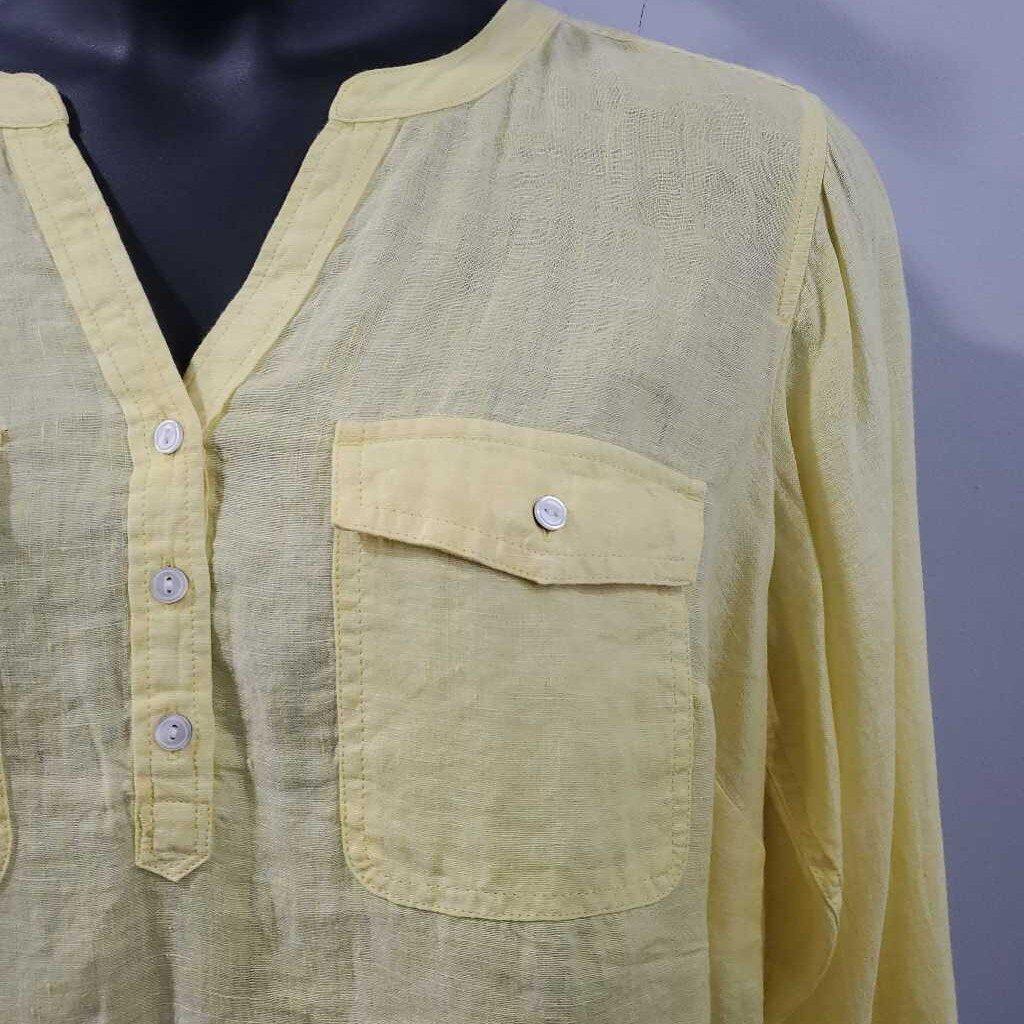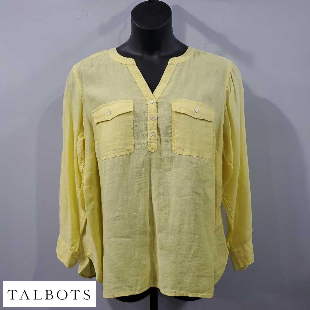 Talbots Long Sleeve 100% Linen Top NWT, Half Button โ