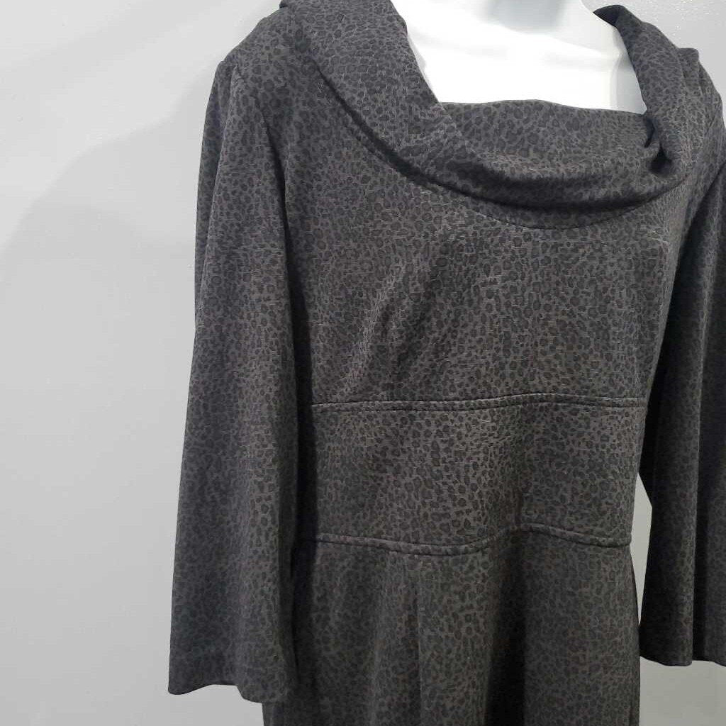3/4 Sleeve Knit Dress w/Cowlneck, Cheetah Print β