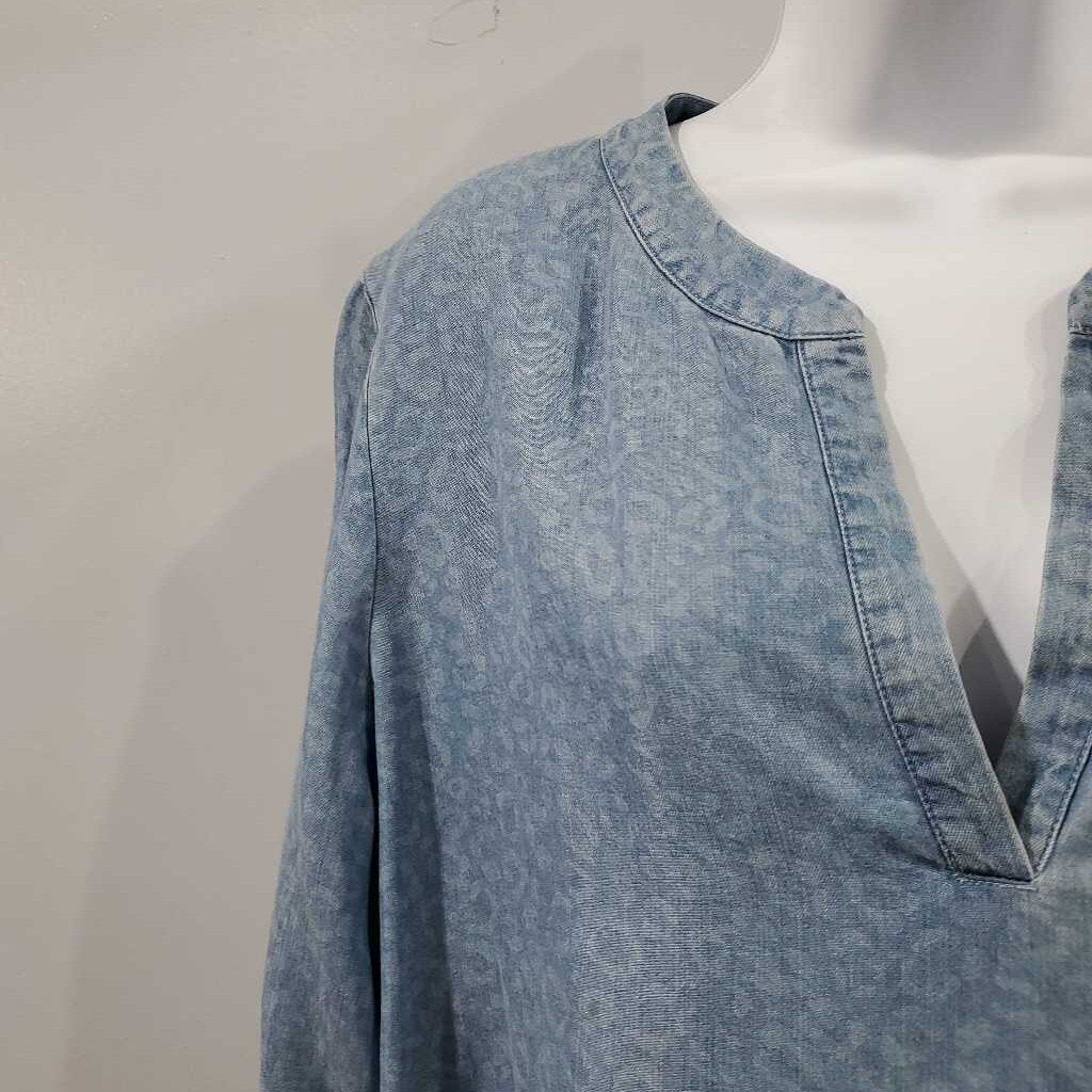 Long Sleeve Cheetah Print Denim Top ✅ Triple inspected for quality, condition & authenticity! 💯 Authenticity guaranteed or money back. ❓ Questions? Contact us. 📍 Ships from Enterprise, AL.