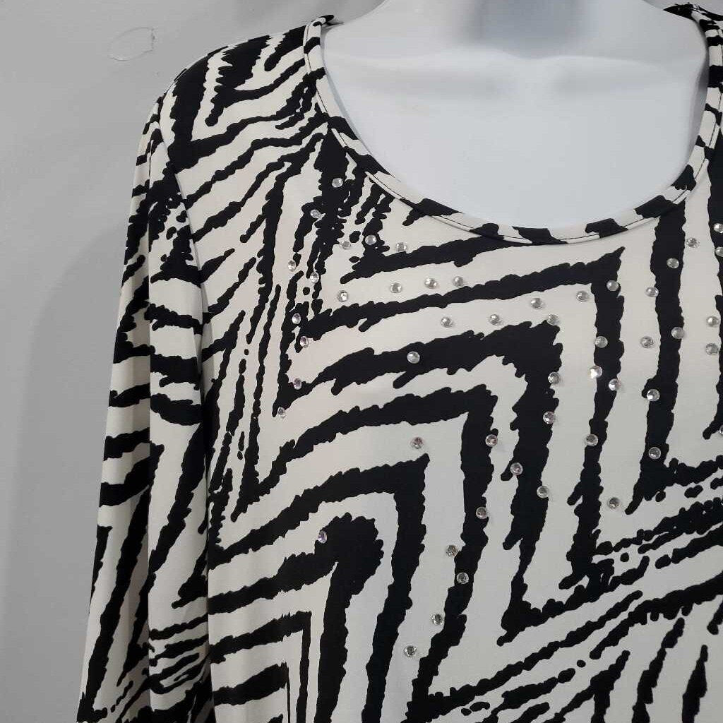 3/4 Sleeve Zebra Rhinestone Accent Knit Top â