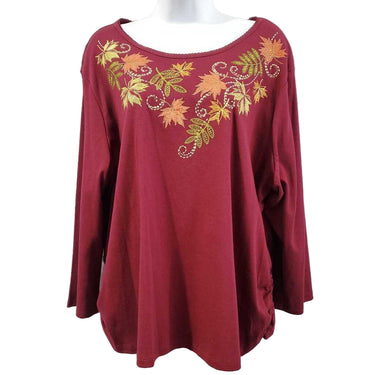 3/4 Sleeve Knit MultiColor Leaves Embroidery