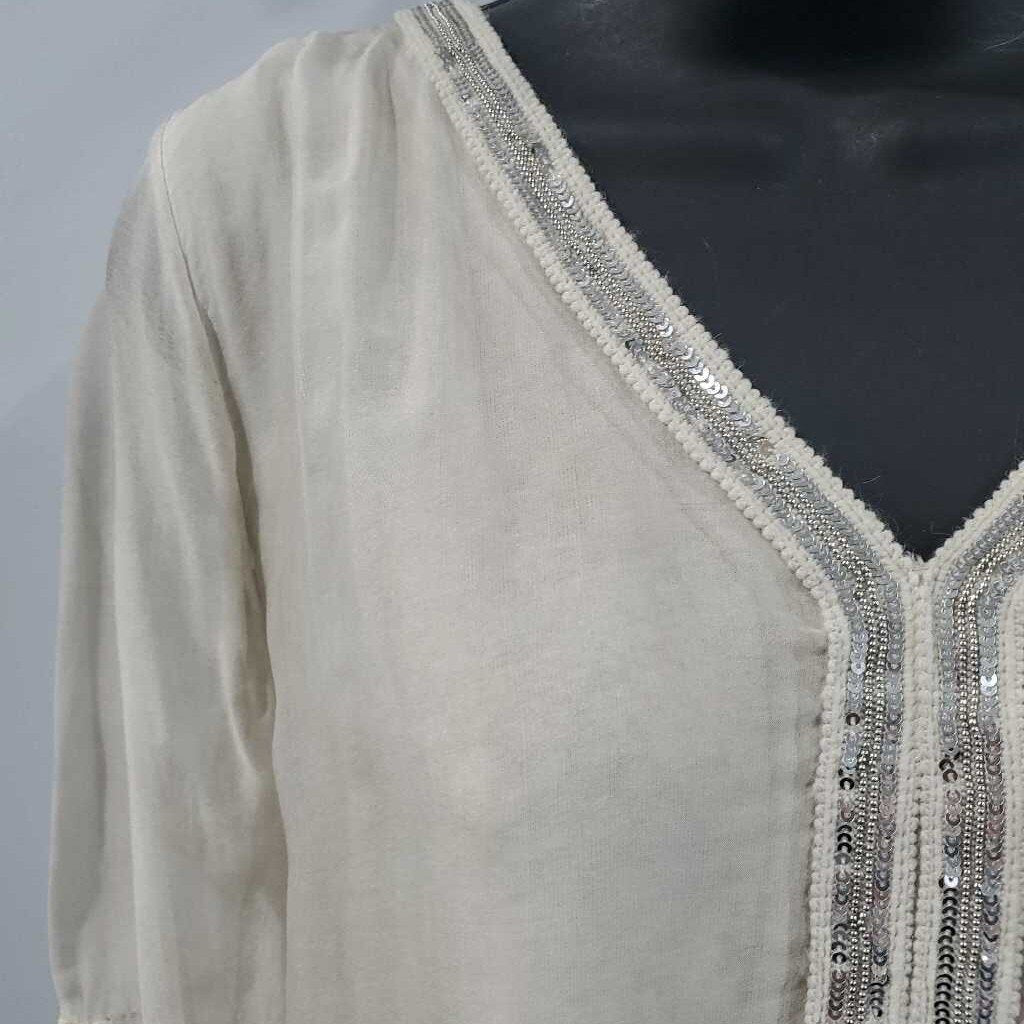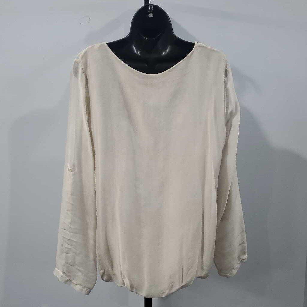 Long Sleeve Silk Blend Embellished Top, Silver Sequins along the neckline ✅ Triple inspected for quality, condition & authenticity! 💯 Authenticity guaranteed or money back. ❓ Questions? Contact us. 📍 Ships from Enterprise, AL.