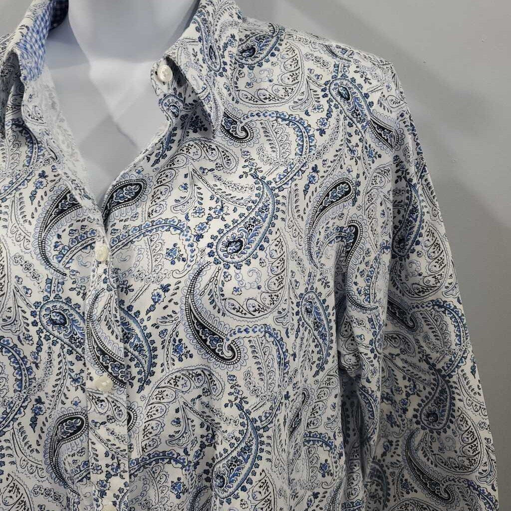 Long Sleeve Paisley Button Up 100% Cotton Top, No Iron β