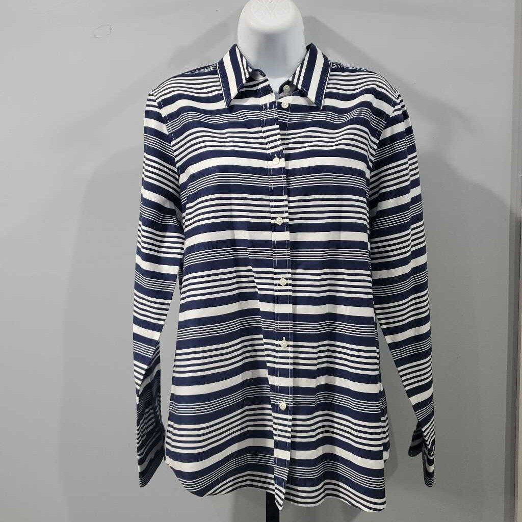 Long Sleeve Striped 100% Cotton Button Up Top, Under Arm To Under Arm Measures 38inch No Size Tag β