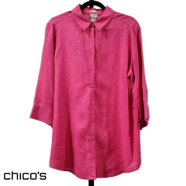 3/4 Sleeve Linen No Iron Button Down Shirt, Chico's size 2 βœ… Triple inspected for quality, condition & authenticity! πŸ’― Authenticity guaranteed or money back. ❓ Questions? Contact us. πŸ“ Ships from Enterprise, AL.