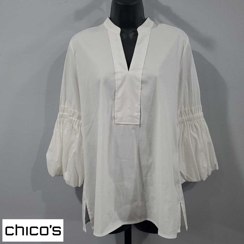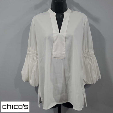 Lantern Sleeve Split Neck Top, Chico's Size 0, Cotton Blend β