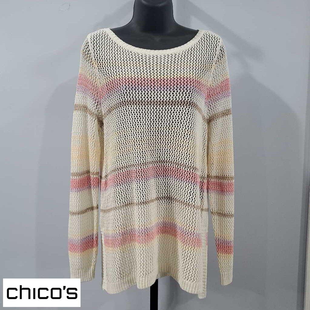 Long Sleeve Striped Mesh Top, Chico's Size 0 β