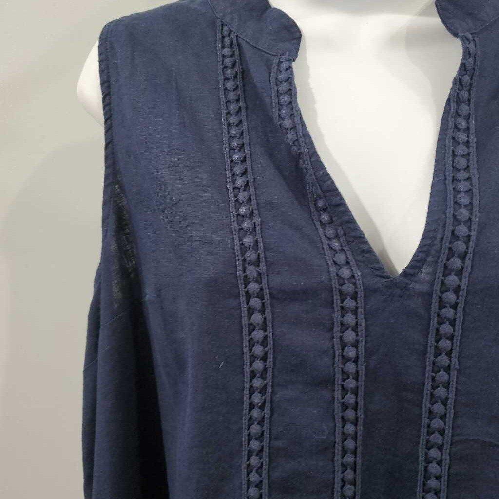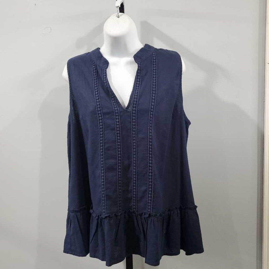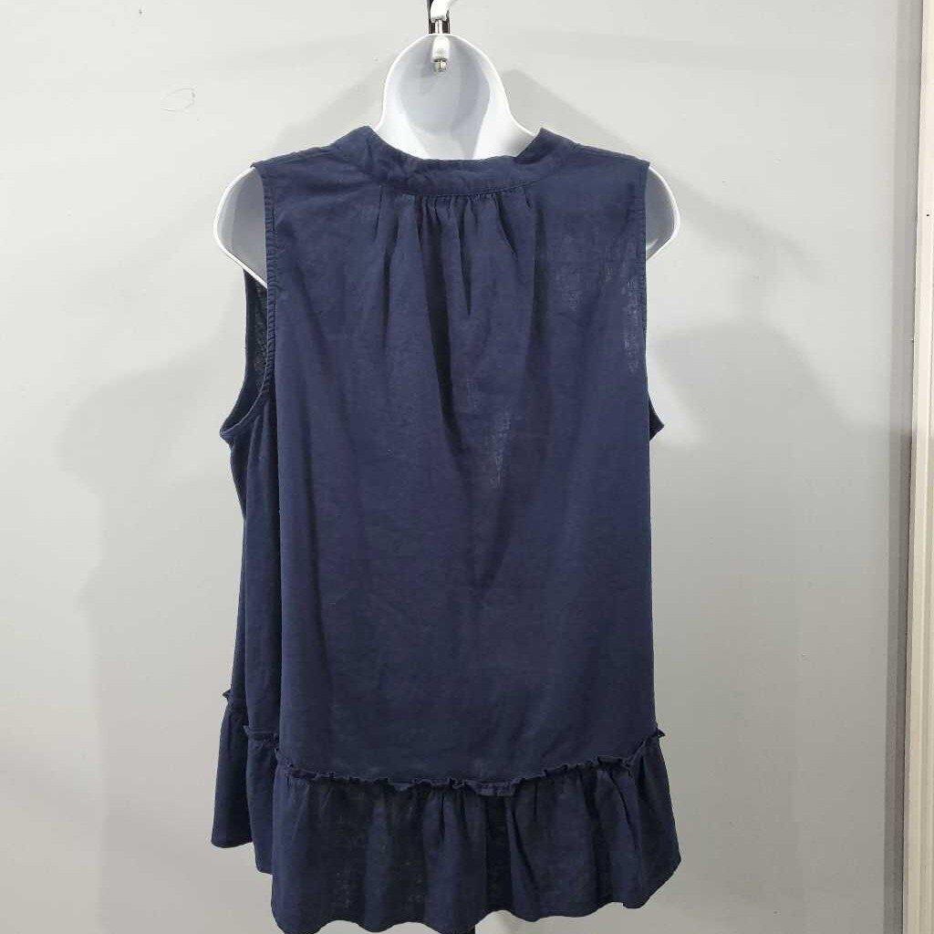 Sleeveless Linen Blend Lace Accent Ruffle Top ✅ Triple inspected for quality, condition & authenticity! 💯 Authenticity guaranteed or money back. ❓ Questions? Contact us. 📍 Ships from Enterprise, AL.