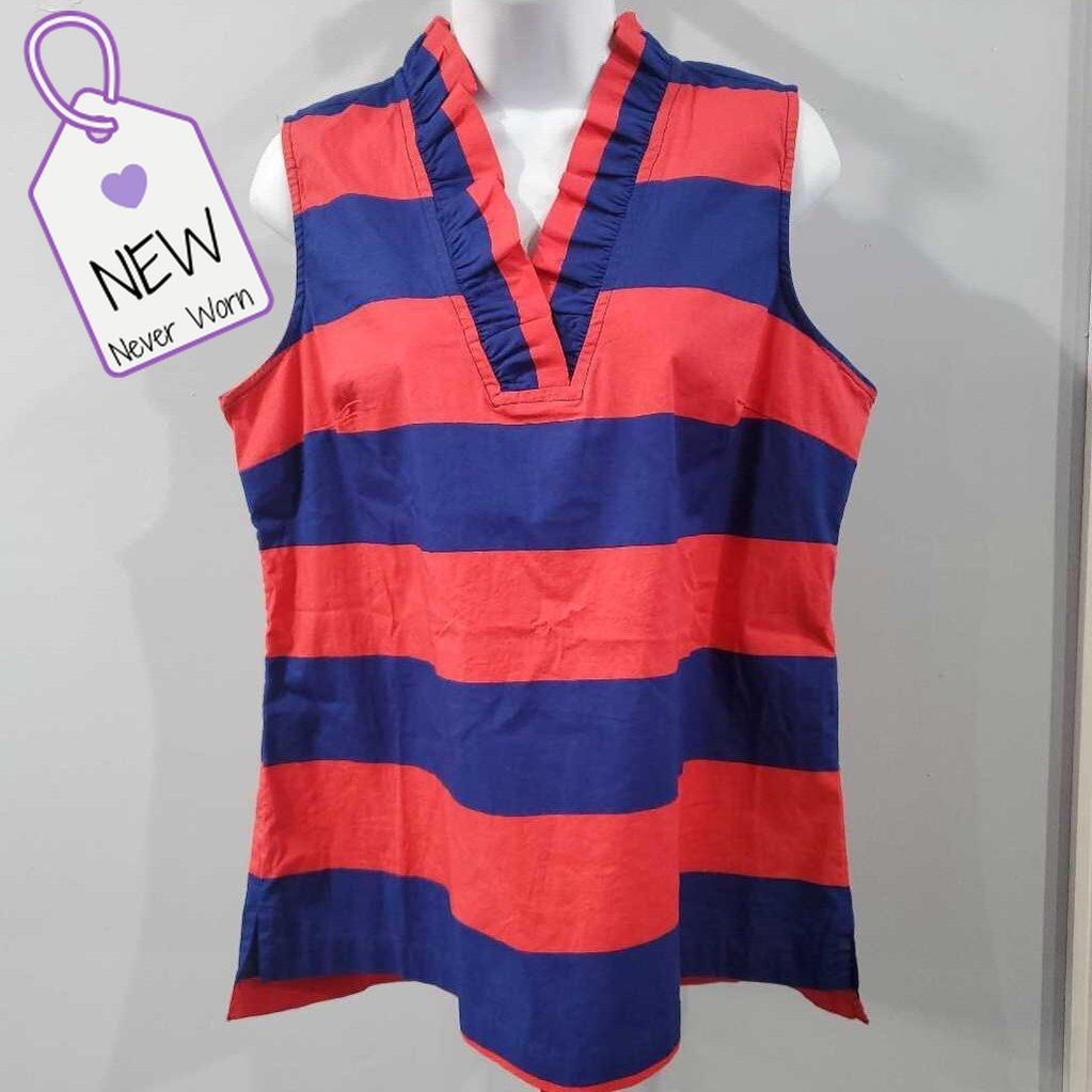 Sleeveless Stripe Ruffle Neck Top NWT ✅ Triple inspected for quality, condition & authenticity! 💯 Authenticity guaranteed or money back. ❓ Questions? Contact us. 📍 Ships from Enterprise, AL.