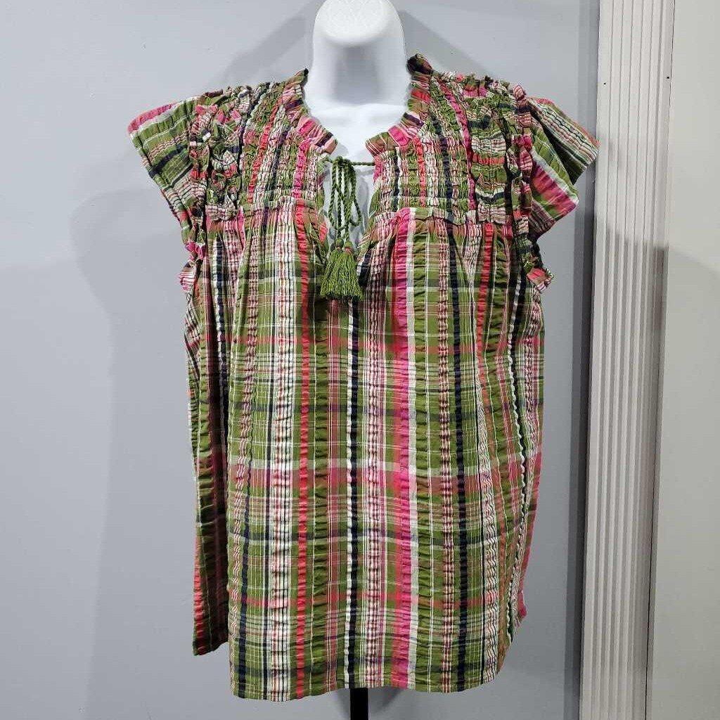 Cap Sleeve Ruffle Accent Plaid Top ✅ Triple inspected for quality, condition & authenticity! 💯 Authenticity guaranteed or money back. ❓ Questions? Contact us. 📍 Ships from Enterprise, AL.