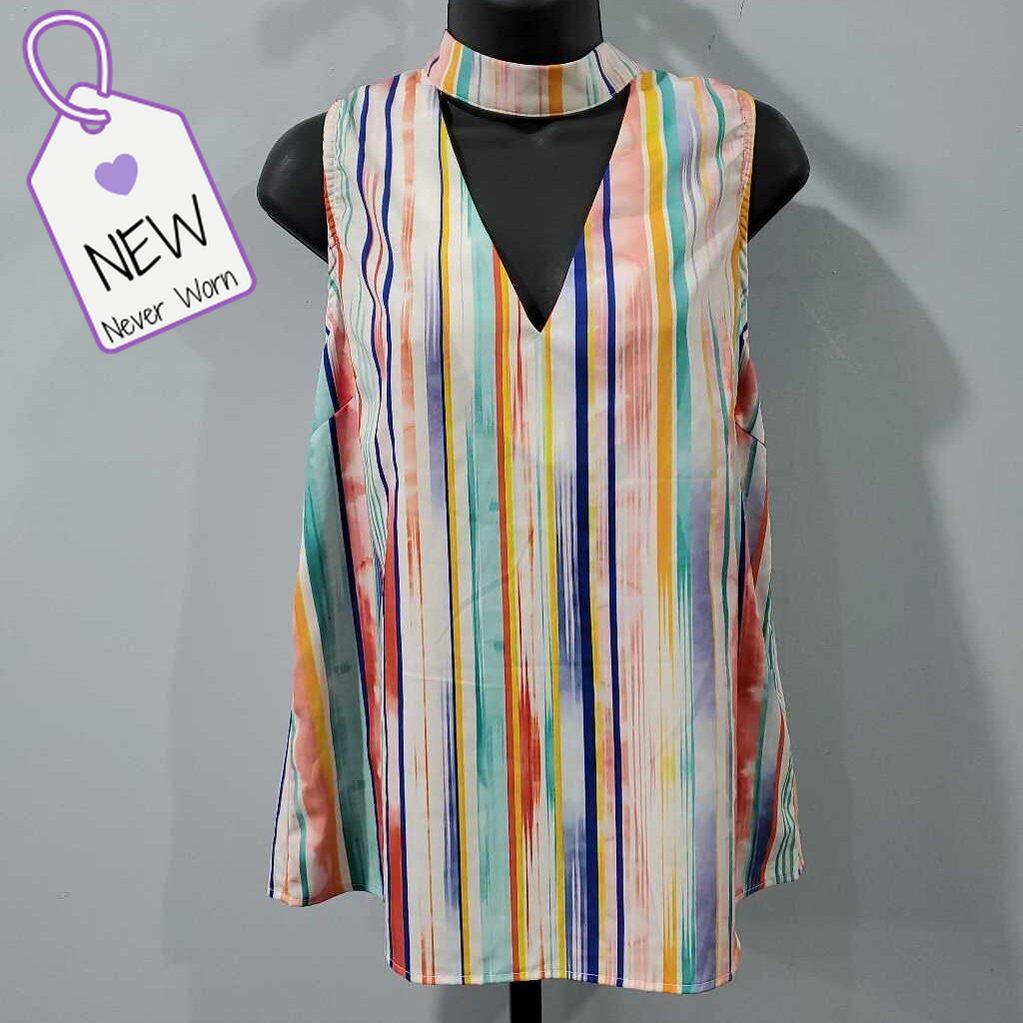 Sleeveless Stripe V-Neck Top NWT ✅ Triple inspected for quality, condition & authenticity! 💯 Authenticity guaranteed or money back. ❓ Questions? Contact us. 📍 Ships from Enterprise, AL.
