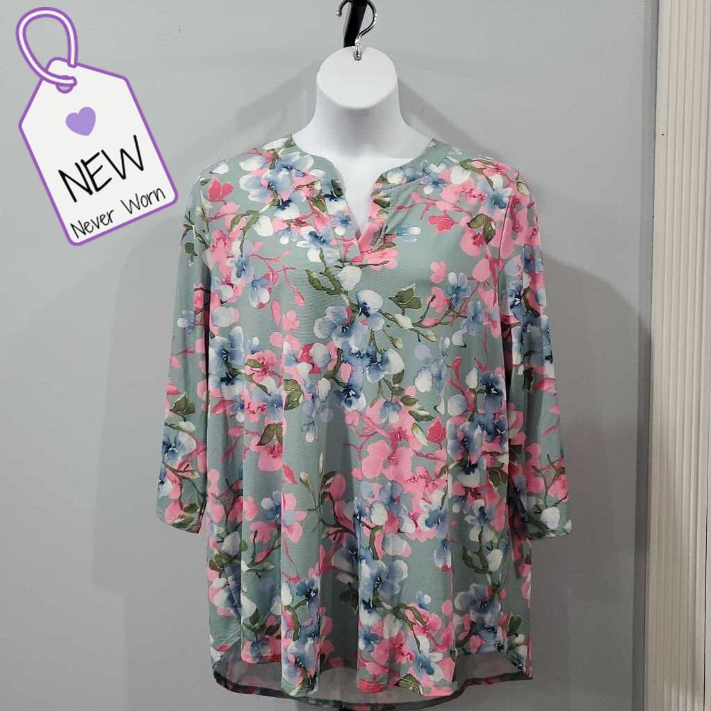 3/4 Sleeve Floral Split Neck NWT ✅ Triple inspected for quality, condition & authenticity! 💯 Authenticity guaranteed or money back. ❓ Questions? Contact us. 📍 Ships from Enterprise, AL.