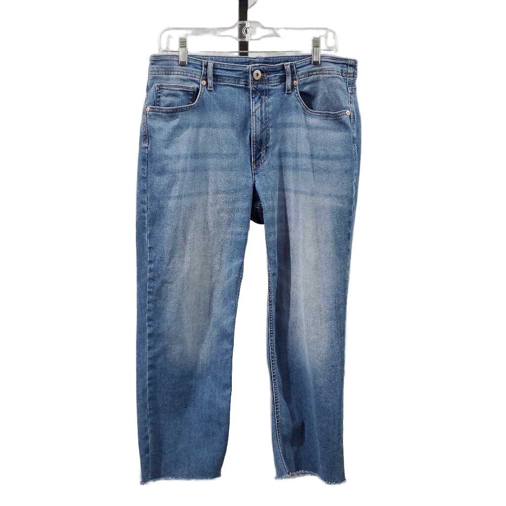 Hi Rise Straight Leg Crop Jeans with Factory Fray Hem