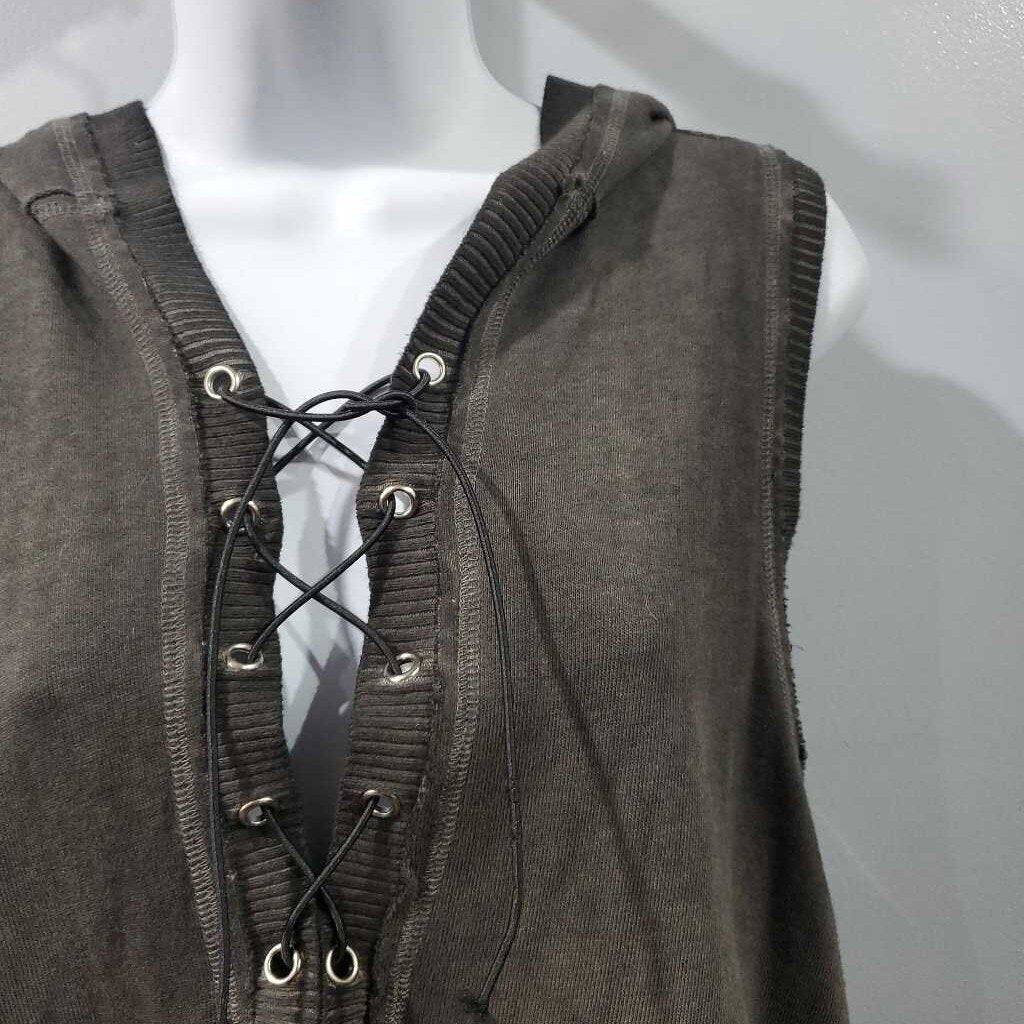 Sleeveless Grommet Lace Up Knit Hoodie ✅ Triple inspected for quality, condition & authenticity! 💯 Authenticity guaranteed or money back. ❓ Questions? Contact us. 📍 Ships from Enterprise, AL.