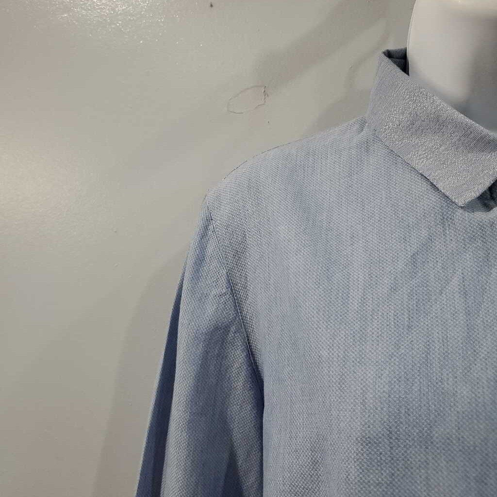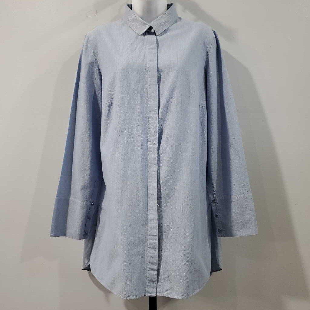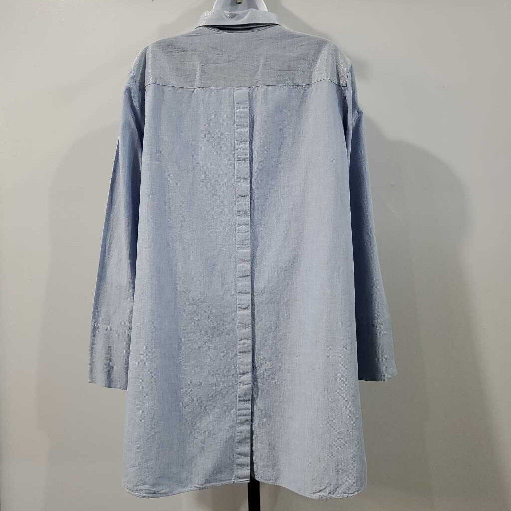 Long Sleeve Button Front Cotton Tunic, with detachable metallic collar that allow top to convert to mandarin collar, Upper yoke in back is also metallic, back also has a hidden button placket like the front, side slits ✅ Triple inspected for quality, condition & authenticity! 💯 Authenticity guaranteed or money back. ❓ Questions? Contact us. 📍 Ships from Enterprise, AL.