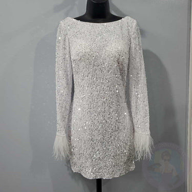 Long Sleeve Feather Trim Sequin Sheath Semi-Formal β