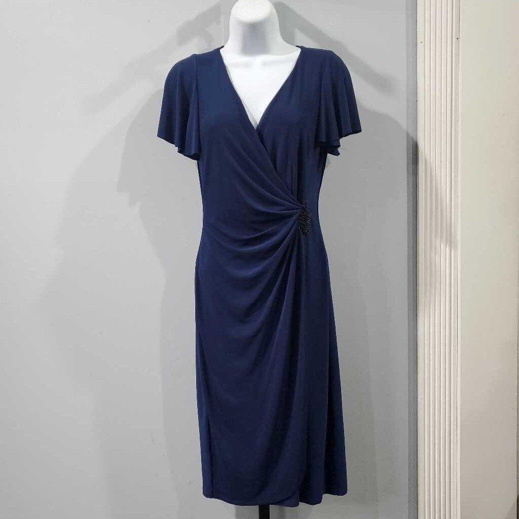 Cap Sleeve Embellished Surplice Waist Faux Wrap Knit Dress ideal for banquet or semi formal events ✅ Triple inspected for quality, condition, & authenticity! 💯 Authenticity guaranteed or money back. ❓ Questions? Contact us. 📍 Ships from Enterprise, AL.