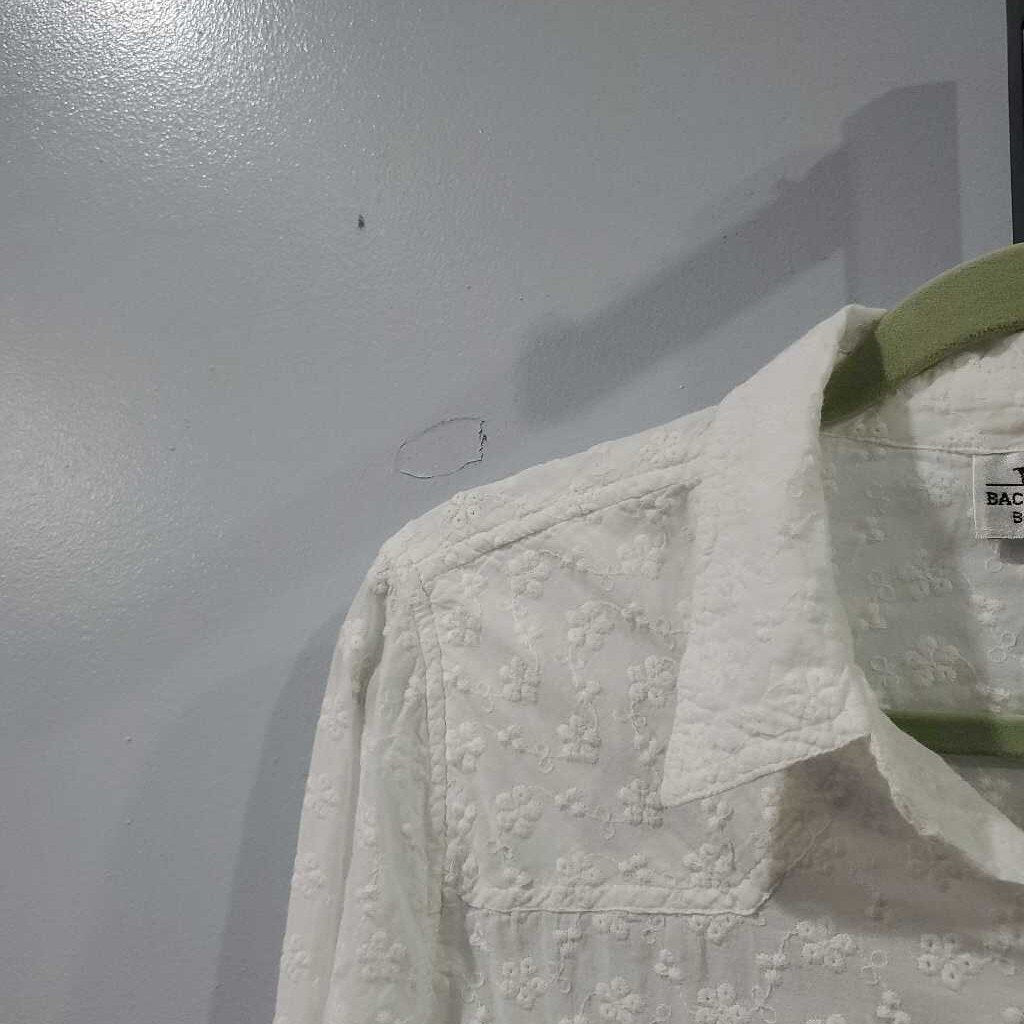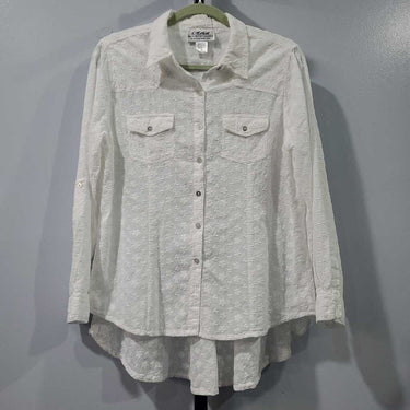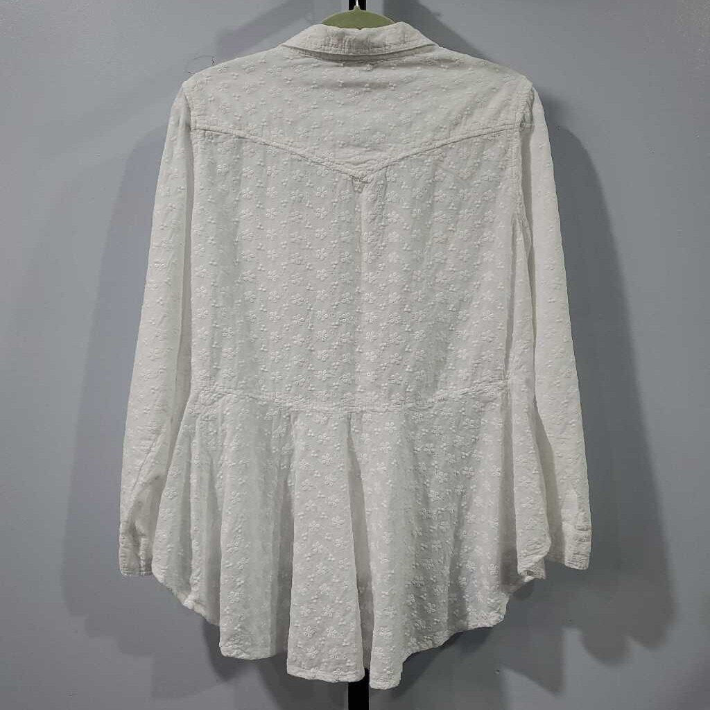 Long Sleeve Eyelet Button Up Peplum Back Blouse β
