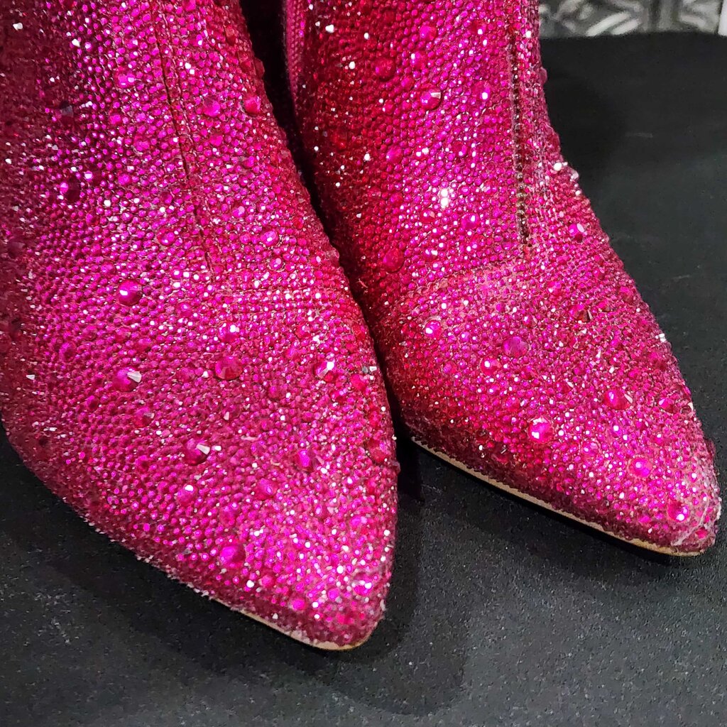 SB-Cady Rhinestone Ankle Boots with Block Heel, wear on the bottoms, otherwise great condition, Box is crumpled and torn in one corner ✅ Triple inspected for quality, condition, & authenticity! 💯 Authenticity guaranteed or money back. ❓ Questions? Contact us. 📍 Ships from Enterprise, AL.
