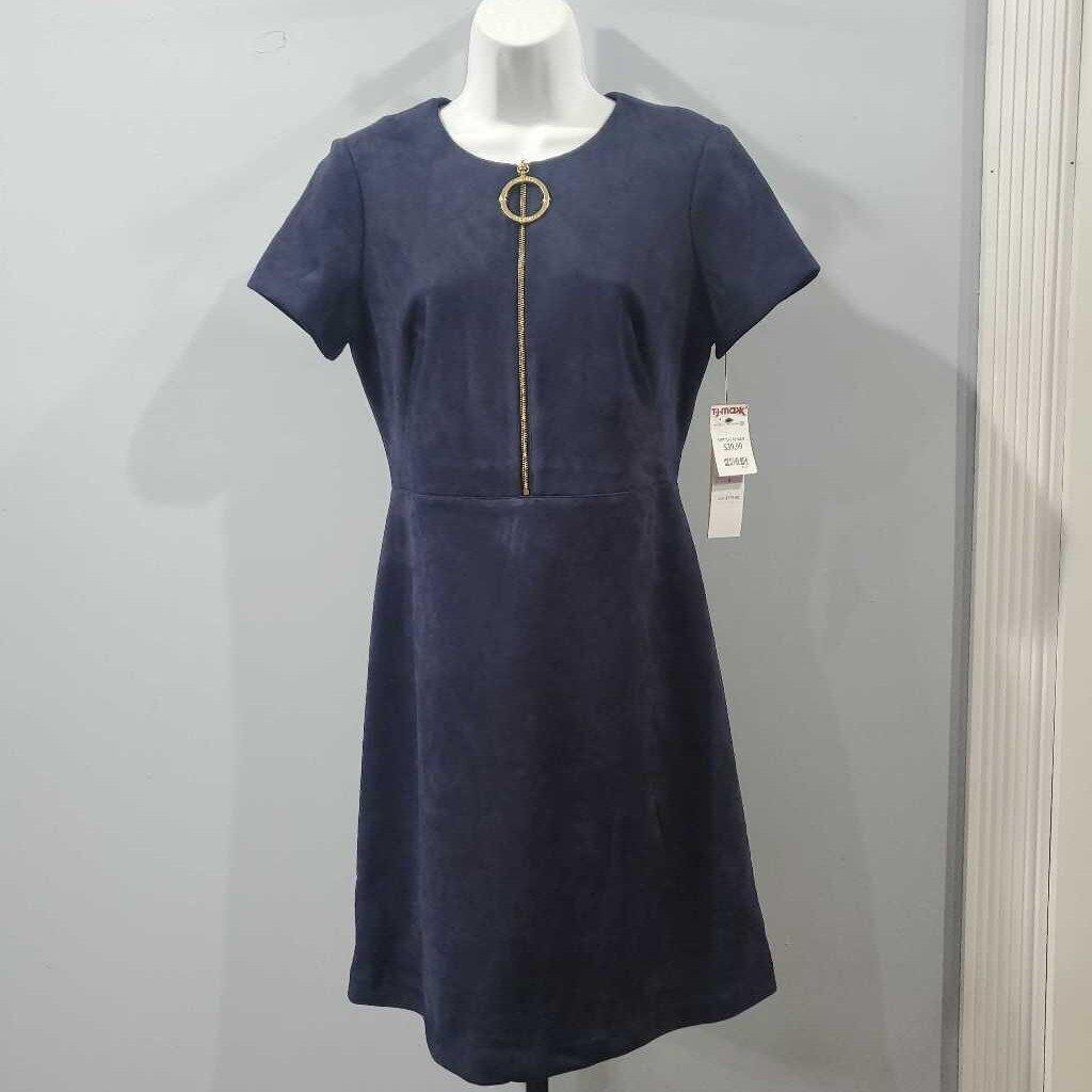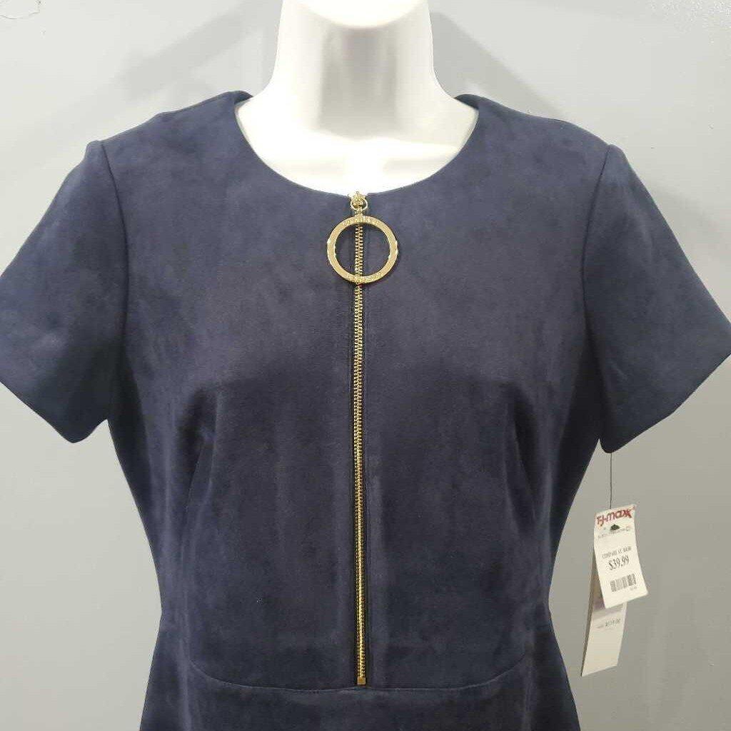Short Sleeve Zip Front Brushed Micro Suede Career Dress โ